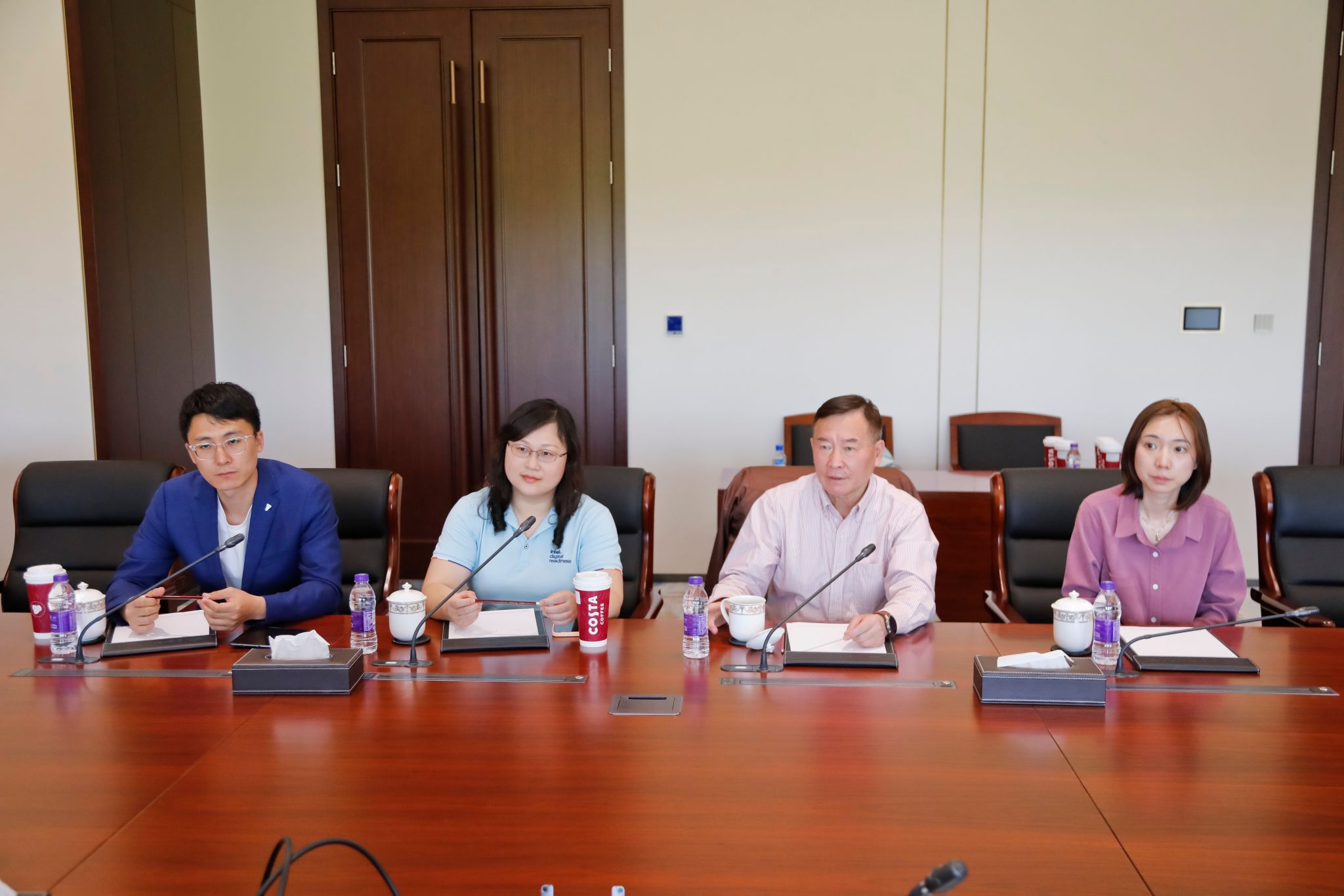 之后,在园区总部大楼二层会议室,与英特尔亚太研发中心和东软集团领导就人才培养与产学研合作进行座谈交流。