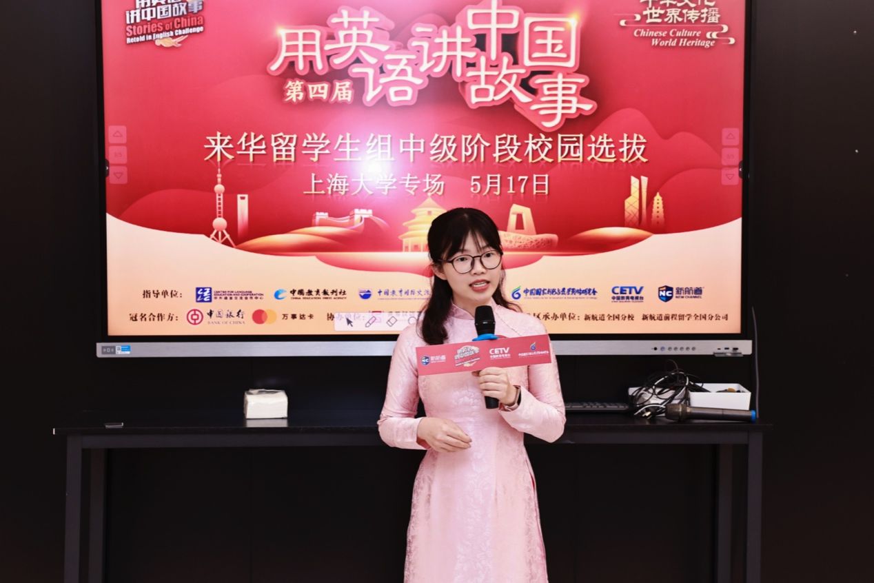 5月17日下午,第四届“用英语讲中国故事”上海大学国际学生选手校园选拔活动在上大南区创新创业基地多功能报告厅拉开帷幕。本次活动由国际教育学院主办,来自不同专业的22位国际学生选手汇聚一堂,同台竞技,讲述他们心中生动鲜活的中国故事,分享自己对中国传统文化、科技创新、成语故事、社交媒体和社会生活发展等方面的认识、体验和感想。
