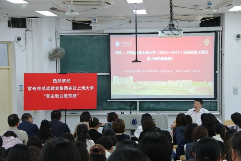 5月18日,常州市觅渡教育集团三校区所有党员教师及部分管理团队成员一同走进瞿秋白曾任教的上海大学,开展“重走秋白教育路”实境思政课活动。上海大学社会学院党委副书记、副院长张乃琴,常州市觅渡教育集团校长、党支部书记徐志彤,上海市高校思想政治理论课名师工作室“胡申生工作室”负责人、上海大学教授胡申生以及社会学院部分师生党员共同参与。