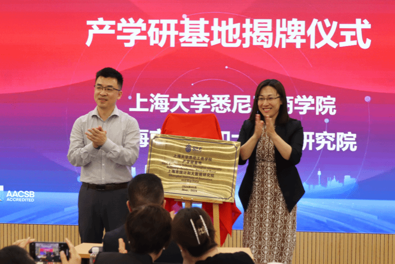 上海大学悉尼工商学院—上海市统计和大数据研究院产学研基地和上海大学悉尼工商学院—上海羽山科技有限公司协同创新基地在会上揭牌。上海市统计和大数据研究院孙杭麟副院长、上海羽山科技有限公司邱瑞平总经理分别致辞。孙杭麟副院长对合作基地成立表示祝贺,期待双方能够共同探究统计科学和数据科学的新理论和新方法,为城市数字化赋能添砖加瓦。邱瑞平总经理对悉尼工商学院三十年来的教研和人才培养成果表示肯定,表示羽山科技一直潜心数据科技领域,在赋能产业数字化升级方面取得了多项自主研发的数据科技成果,未来的合作中将结合学院的优质教学资源和企业的创新实践能力,为现代化人才培养贡献力量。