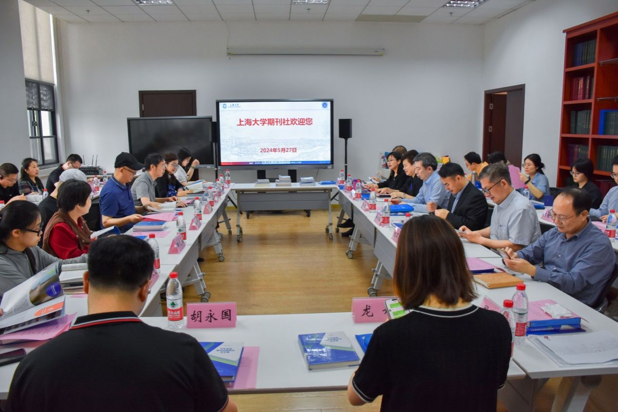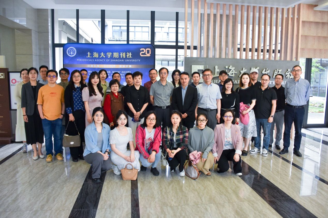 5月27日下午,重庆市期刊同仁一行二十余人到访上海大学期刊社开展调研。中共重庆市委当代党员杂志社副总编辑杨安军,重庆市期刊协会秘书长、课堂内外总编助理戴泽明,重庆市期刊协会常务理事、重庆西信天元数据资讯有限公司总经理徐书令,上海大学党委常委、宣传部部长、《上海大学学报(社会科学版)》主编曾军,上海市期刊协会副会长、上海社会科学院上海社会科学杂志社社长、总编辑姜佑福,上海市期刊协会副会长、上海中医药大学图书馆(杂志社)常务副馆长、社长倪力强,上海大学出版社期刊社党委书记杨密娣,上海市期刊协会副会长、上海大学期刊社社长曾桂娥,上海大学出版社期刊社党委副书记杨利明,上海大学期刊社副社长刘志强等出席会议。会议由上海大学期刊社社长曾桂娥主持。