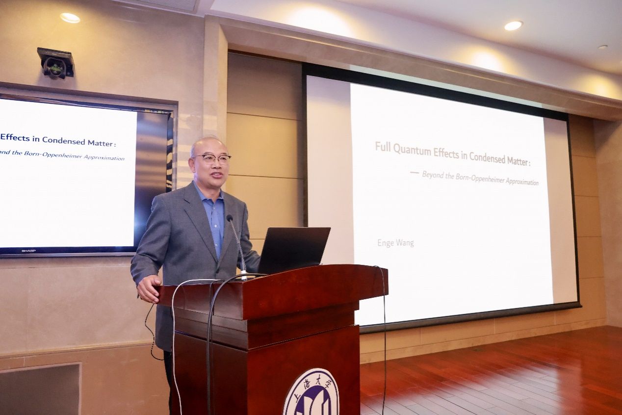 中国科学院王恩哥院士以“凝聚态物理的全量子效应”为题为校内外师生带来了一堂精彩讲座。100余位量子科技领域及量子交叉科学领域的专家学者及师生齐聚一堂,探讨交流量子科技的发展方向。上海大学副校长张建华,学校发展规划处、组织人事部、科研管理部、研究生院等部门参加研讨,上海大学量子科技研究院钟建新院长主持。