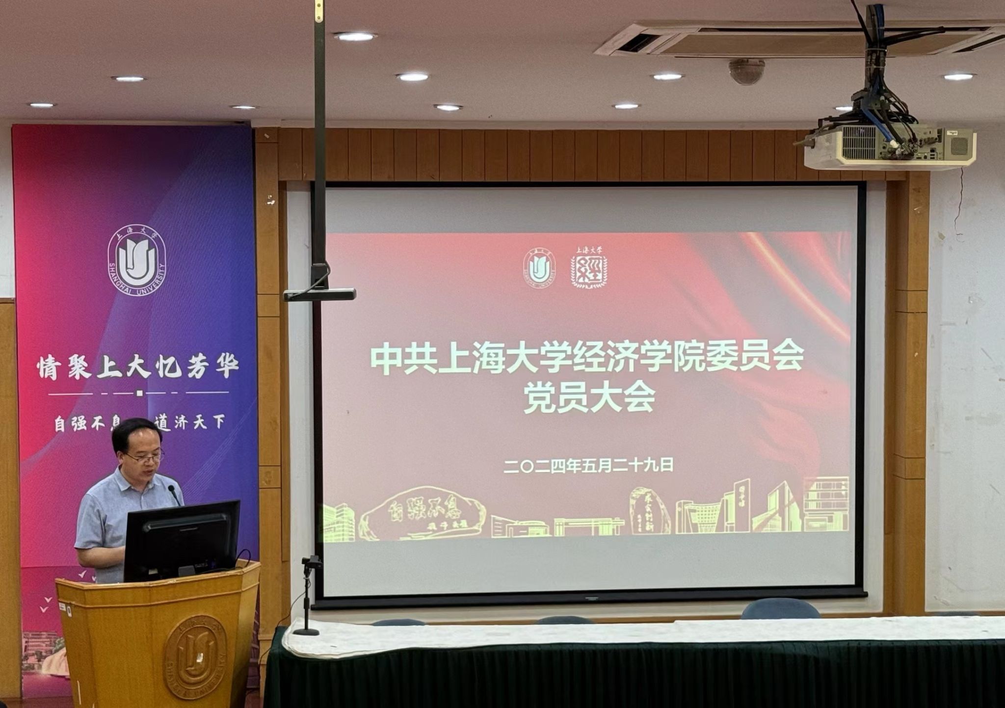 5月29日下午,经济学院在J103教室召开学院党员大会选举出席上海大学第四次党代会代表。校党委组织员黄谷列席会议,党委副书记、常务副院长殷凤,党委委员、副院长刘康兵,党委委员、挂职副院长周思,党委委员、产经中心副主任谭静等全体师生党员参加此次会议。本次会议由经济学院党委副书记、副院长冯玉鑫主持。
