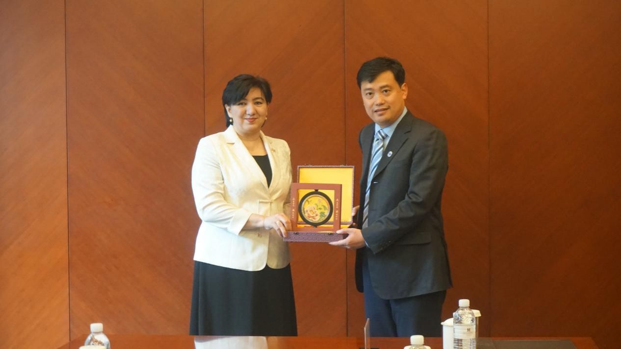 国际部党委书记王丽娜,国际部党委副书记、副部长、国际合作处处长崔巍,文学院党委书记陆甦颖,经济学院副院长毛雁冰,上海合作组织公共外交研究院副院长张丹华陪同会见。