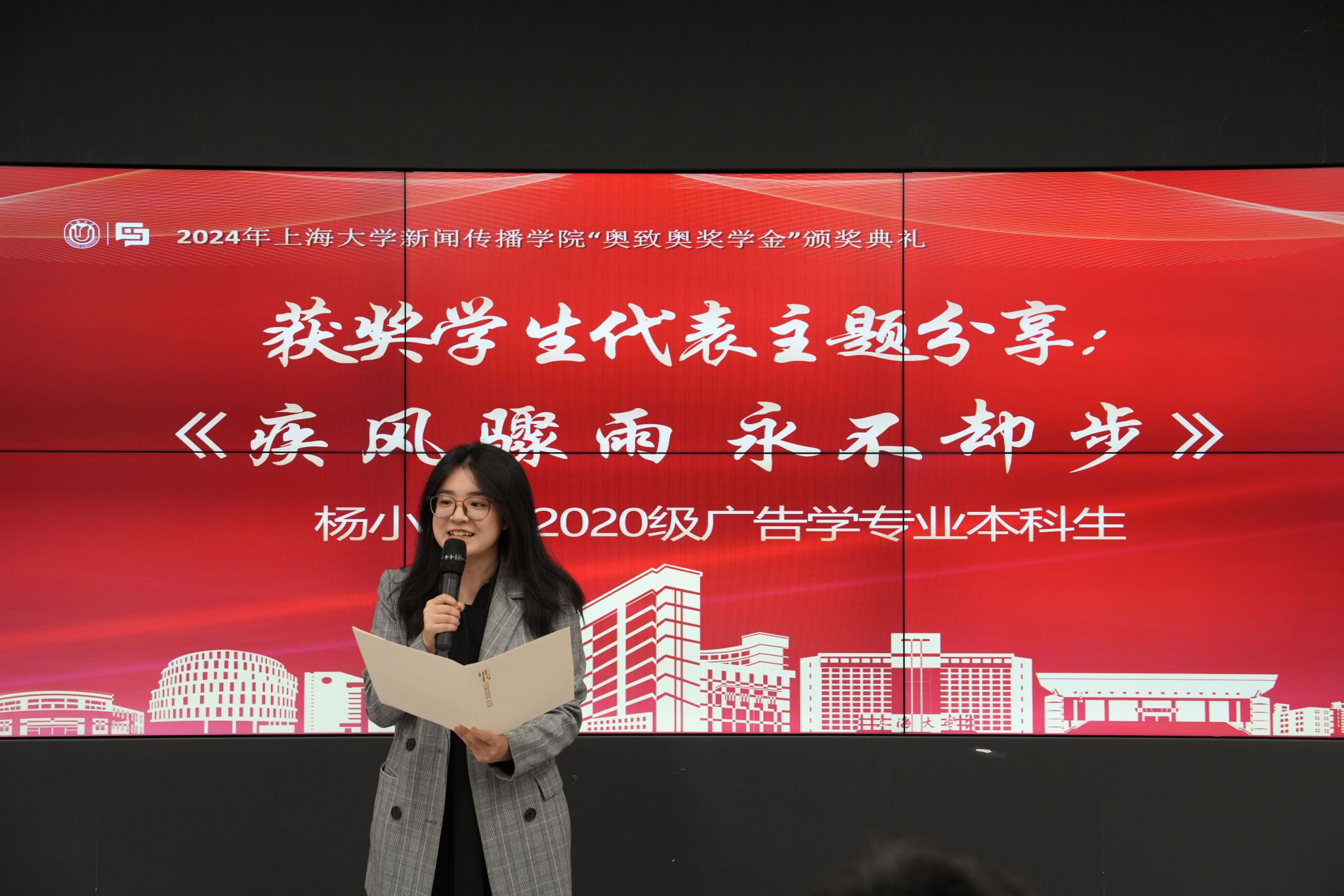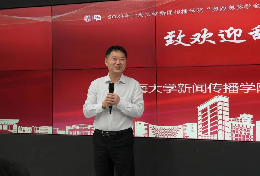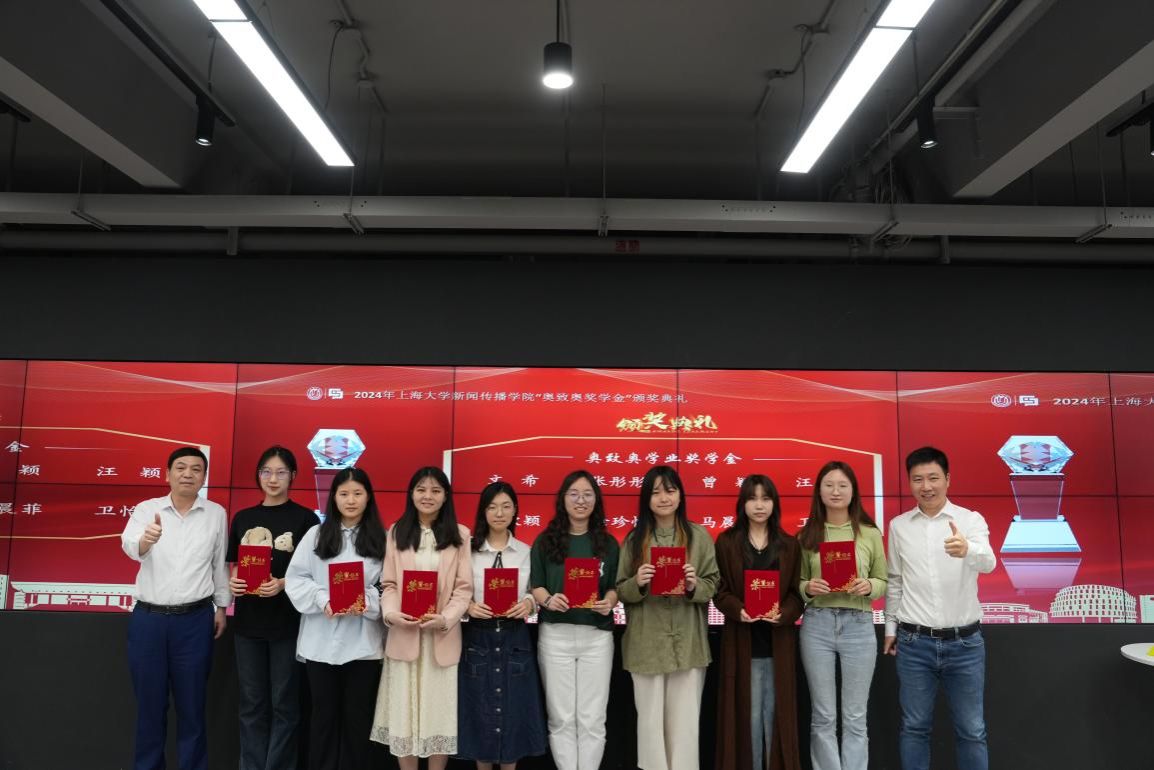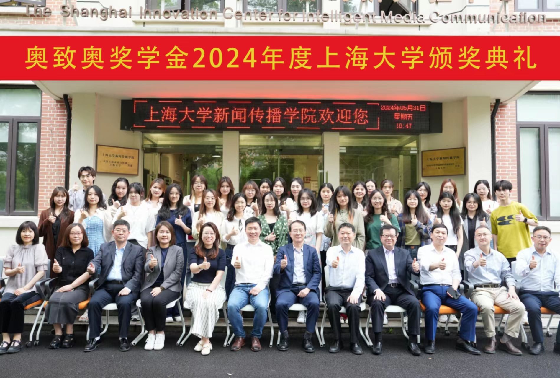 近日,2024年度上海大学新闻学院“奥致奥奖学金”颁奖典礼在学院实验中心举行。上海奥致奥科技集团股份有限公司CEO江军,副总裁梁桂泉,副总裁周春燕,副总裁朱涵峥,上海大学新闻传播学院党委书记王晴川,党委副书记、院长严三九,党委副书记、副院长王智君,副院长赵为学,副院长牛盼强,副院长周宇豪及广告学系支部书记孟令光,系主任邬盛根,辅导员郝秋华,彭红,万喃喃等老师代表和获奖学生参加活动。奥致奥科技集团股份有限公司领导老师和上海大学新闻传播学院师生齐聚一堂,共同见证这一重要时刻,旨在表彰在学术、创意、领导力和励志方面表现优异的学生。