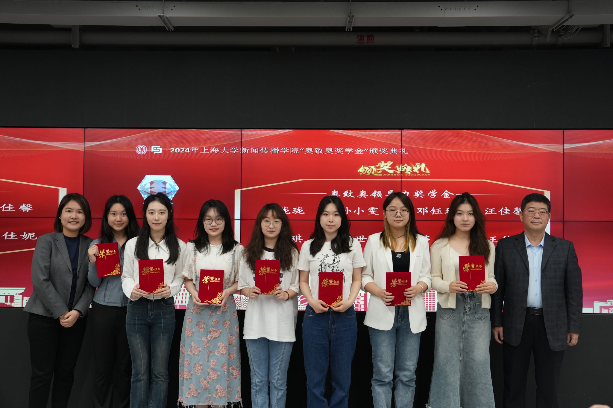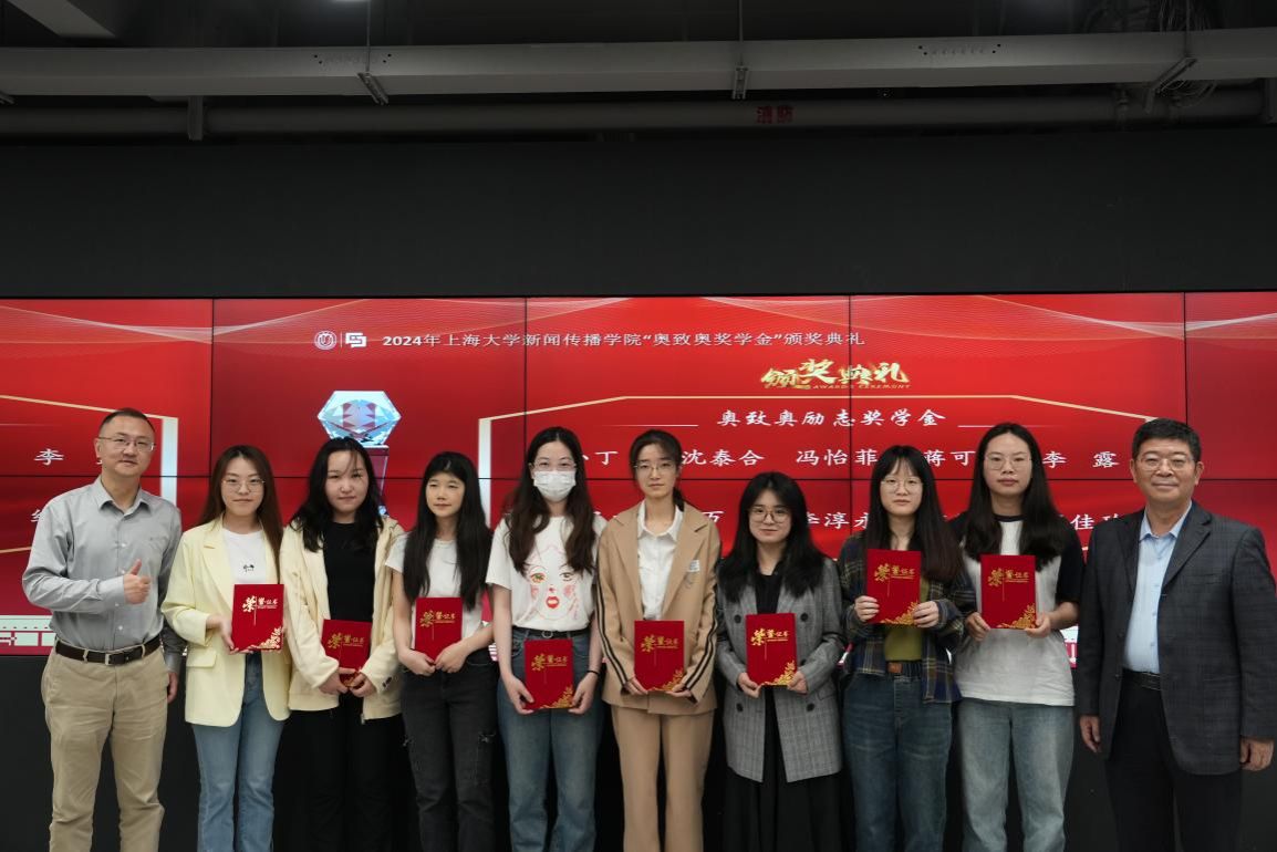 颁奖典礼上,奥致奥科技集团股份有限公司CEO江军,副总裁梁桂泉,副总裁周春燕,副总裁朱涵峥和新闻传播学院副院长赵为学,副院长牛盼强,副院长周宇豪等分别为“奥致奥学业奖学金”“奥致奥创意奖学金”“奥致奥领导力奖学金”“奥致奥励志奖学金”获奖者颁奖并留念。获奖同学们在各自的领域学有所长,发光发热,展现了上海大学新闻传播学院学子积极奋发,大有可为的精神风采。