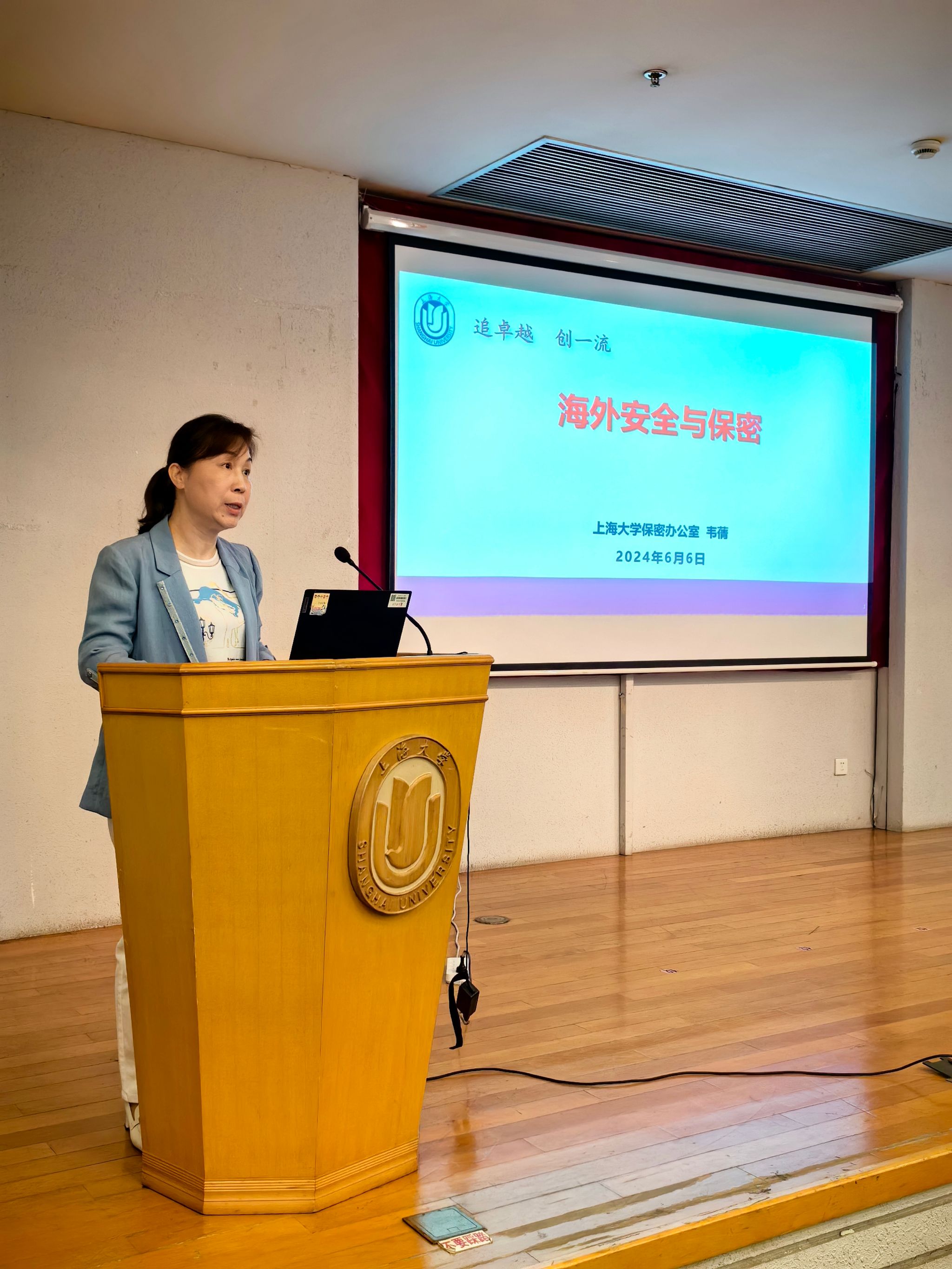 保密办公室主任韦蒨为大家带来了“海外安全与保密”的专题讲座。韦主任深入阐述了海外安全与保密工作的内容和范围,结合出国(境)真实案例,剖析了负面行为导致的危害性和后果,对出国(境)访问应当注意的问题以及处理各种突发事件的应对方案与措施做了着重提醒。