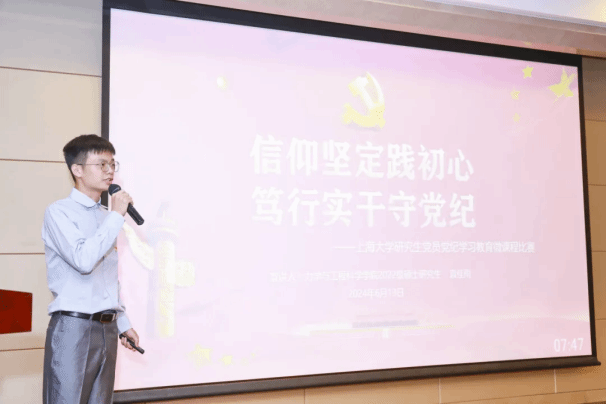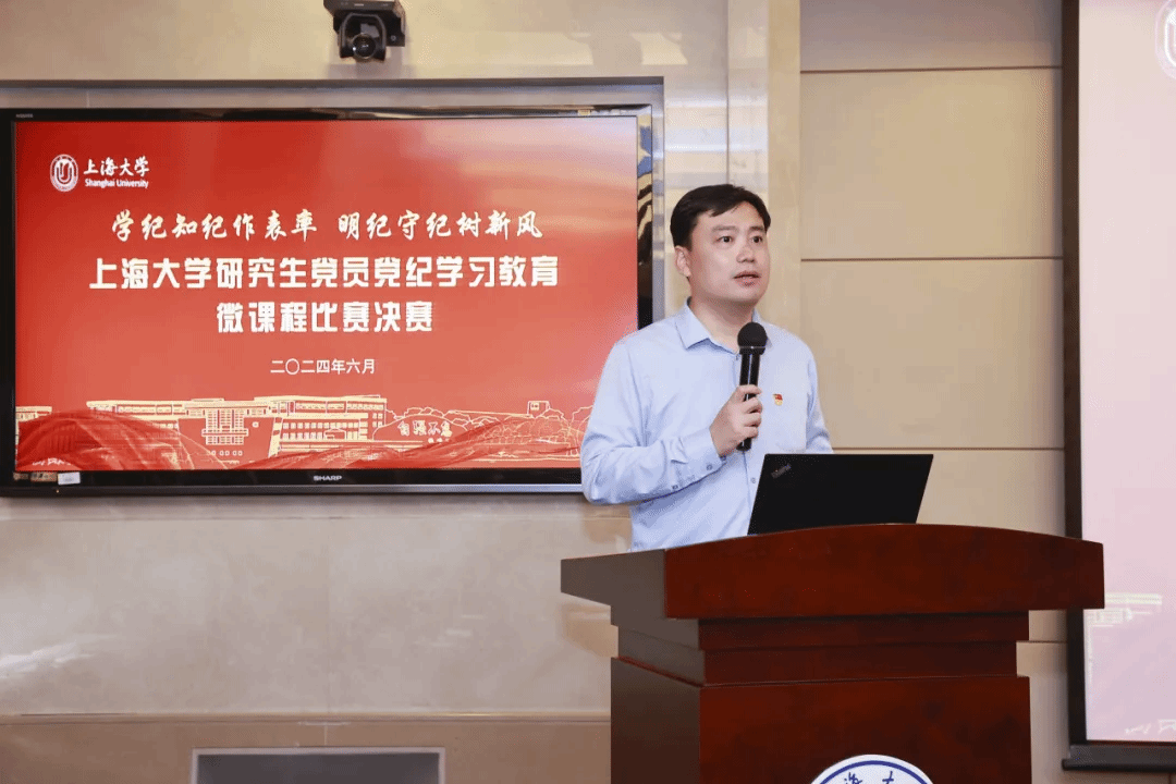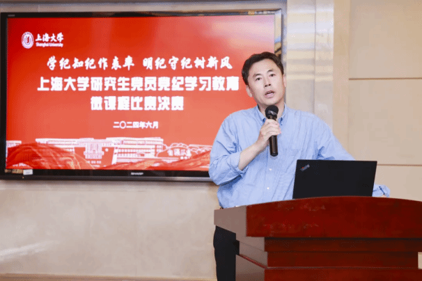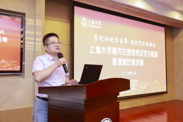 为深入贯彻落实习近平新时代中国特色社会主义思想和党的二十大精神,推进党纪学习教育走实走深,提升研究生党员的纪律意识和规矩意识,6月13日下午,上海大学研究生党员党纪学习教育微课程比赛决赛在上海大学宝山校区举办。