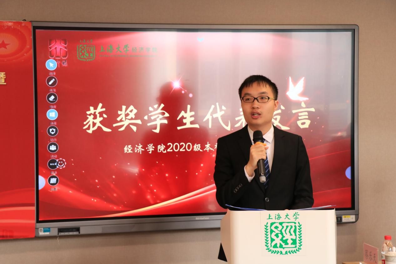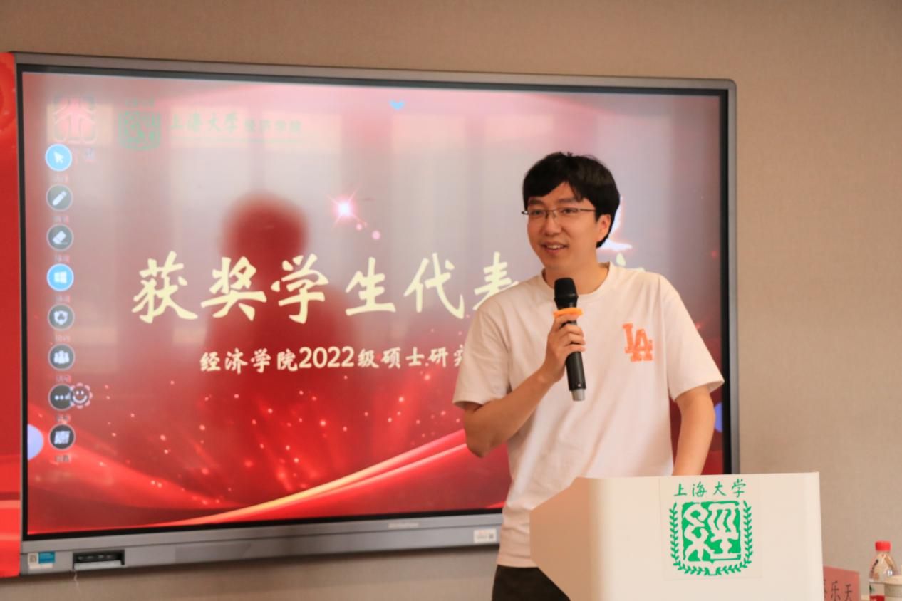 在师生的见证下,2024年度上海大学庙行奖学金颁奖仪式圆满完成。获奖学生代表2020级本科生李佳豪和经济学院2022级硕士研究生杜云韬发表获奖感言。