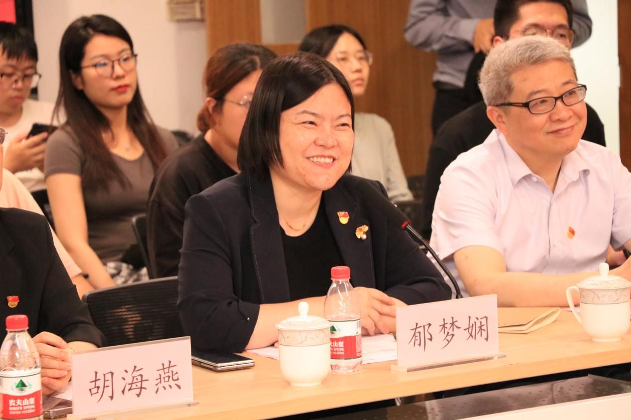 在工作交流中,庙行镇党委书记郁梦娴表示本次上海大学之行留下了深刻的印象,她介绍了庙行镇深度产城融合的特点,希望经济学院的学子们能运用所学,多到庙行镇街道、企业去实习实践,将所思所学结合实际、成长成才。