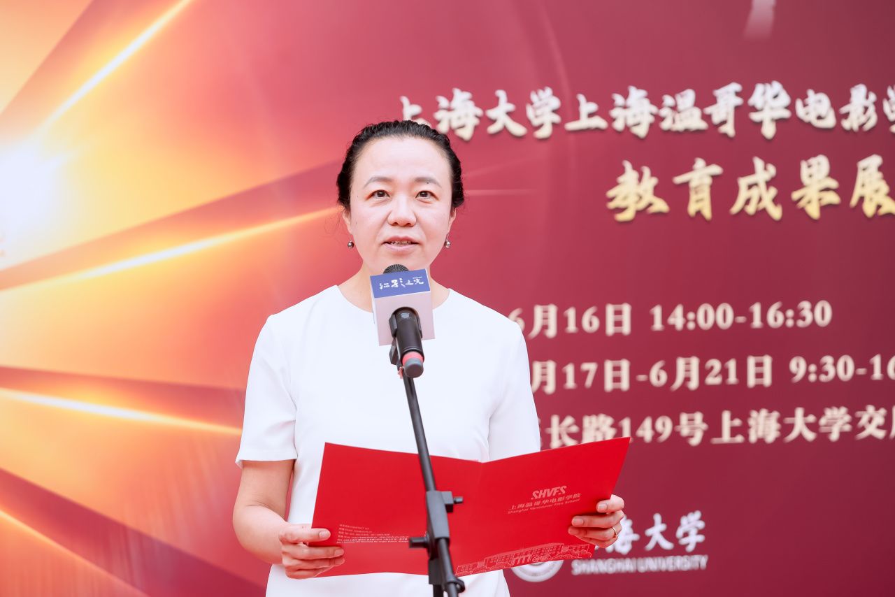 于雪梅副校长在开幕致辞中,向前来参观的嘉宾及校友表示了热烈的欢迎,向全体教职员工的辛勤努力致以由衷的感谢。于副校长强调了上海大学在城市文化建设中的重要角色和温影在培养电影人才方面的重要使命,并展望学院未来将继续聚焦专业型影视人才培养,助力上海文化产业发展和国际文化大都市建设,表达了对温影未来发展的坚定信心和美好祝愿。