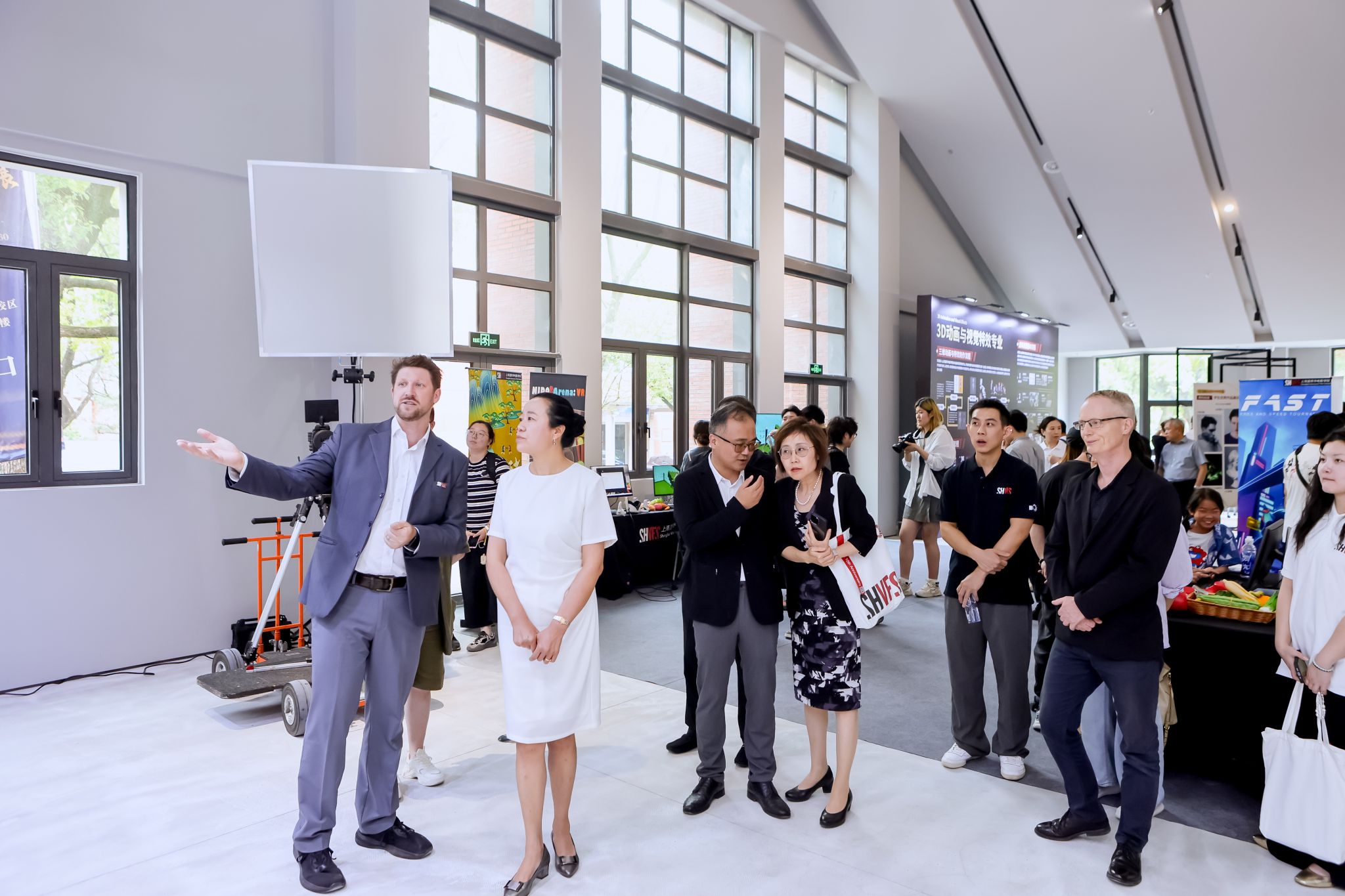 6月16日下午,上海大学上海温哥华电影学院十周年教育成果展在上海大学延长校区交展中心盛大开幕。上海大学副校长于雪梅,上海大学上海温哥华电影学院理事长欧阳华,上海大学悉尼工商学院院长卞亦文,上海大学房屋资产管理处处长刘劲松,上海大学延长校区党政办主任王霖,中欧工程技术学院学工负责人隋萍萍,上海温哥华电影学院执行院长程波,上海温哥华电影学院执行理事蒋为民,上海温哥华电影学院副院长陈晓达,上海温哥华电影学院副院长Dean Burns等领导嘉宾与温影校友、师生齐聚一堂,共同领略这场精心筹备的视听艺术盛宴。