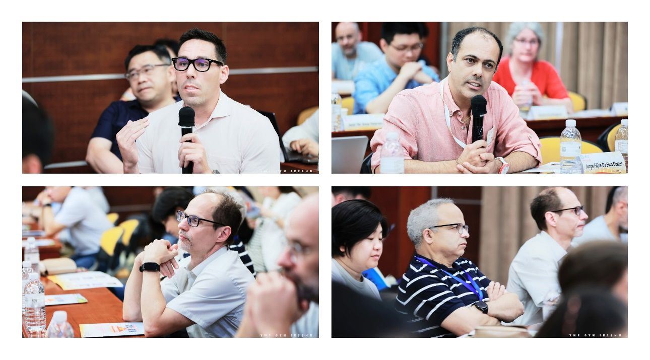 在互动问答环节,泰国艺术大学Nantanit Wanichacheva教授、法国南特国立高等建筑学院Laurent Lescop教授、澳大利亚墨尔本皇家理工大学Hepu Deng教授、英国威斯敏斯特大学Pieter Antoon Verdegem副教授以及巴斯克大学Mois Ilia Aroyo教授与现场及在线师生针对人工智能等前沿技术对于未来人类教育尤其是教学模式的深刻影响、教师的角色和职责应该如何演变等等问题展开互动与交流,学者们分享自身经验、积极各抒己见,气氛活跃。