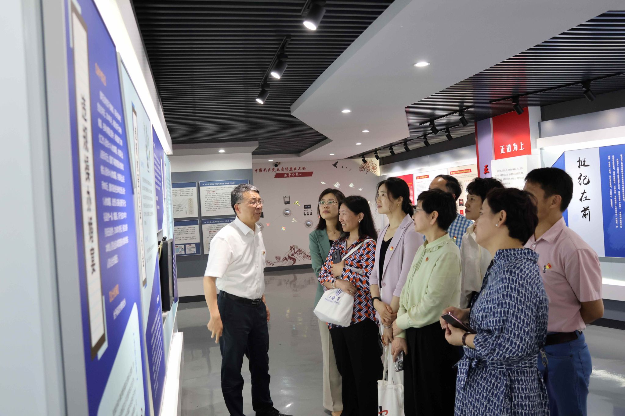 本次联学活动第二站来到普陀区廉政教育基地。该教育基地以反腐倡廉为主题,以“正”为脉络,从“崇高使命、历史征程、正风反腐、示范教育、廉政文化”等五个篇章,传递出“以廉为荣、以贪为耻”的反腐倡廉正能量。大家通过聆听讲解、观看图文展示、现场讨论交流等形式,系统学习了党在各个历史时期反腐败斗争的坚定意志和奋斗历程,了解了党的十八大以来全面从严治党、党风廉政建设和反腐败斗争方面取得的历史性成就。基地展出的多起典型违纪违法犯罪案例及剖析,让人警醒,发人深思,大家纷纷表示,此次参观活动是一次深刻的思想洗礼和廉政教育,使他们更加清醒地认识到廉洁自律的重要性。在今后的工作和生活中,将时刻保持警醒,以党纪国法为准则,严格要求自己,做到廉洁修身、廉洁从政、廉洁用权,把强党性、正党风、守党纪融入日常、化为习惯。