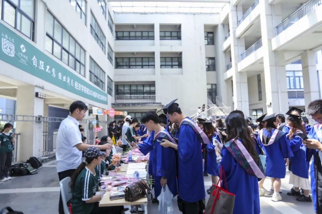 毕业照拍摄后,上海大学经济学院携手江苏银行上海分行,共同为即将踏上新征程的毕业生们举办了一场别开生面的毕业嘉年华活动。活动上,毕业生们在签名本上留下自己的名字,一笔一画是对大学时光的不舍,也是对未来的憧憬。