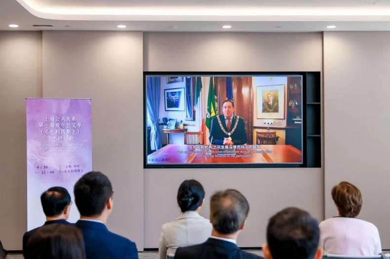 6月16日上午,由上海市公共关系协会、爱尔兰驻上海总领事馆主办,上海人民广播电台城市品牌工作室承办,科克大学-上海大学爱尔兰研究中心协办的上海公共关系第一届爱尔兰文学(《尤利西斯》)学术研讨会在爱尔兰驻上海总领事馆召开。本次研讨会以重读爱尔兰经典小说《尤利西斯》为主题,旨在以文学为纽带,搭建中爱文化交流的平台,进一步促进中爱两国之间的理解、尊重与信任。上海大学爱尔兰研究中心主任、期刊社社长曾桂娥教授及中心成员受邀参会,与各界专家学者及爱尔兰文学爱好者一同领略《尤利西斯》中的民族元素与文化内涵。