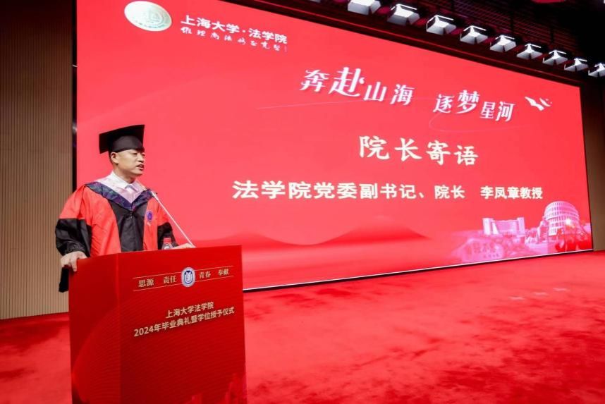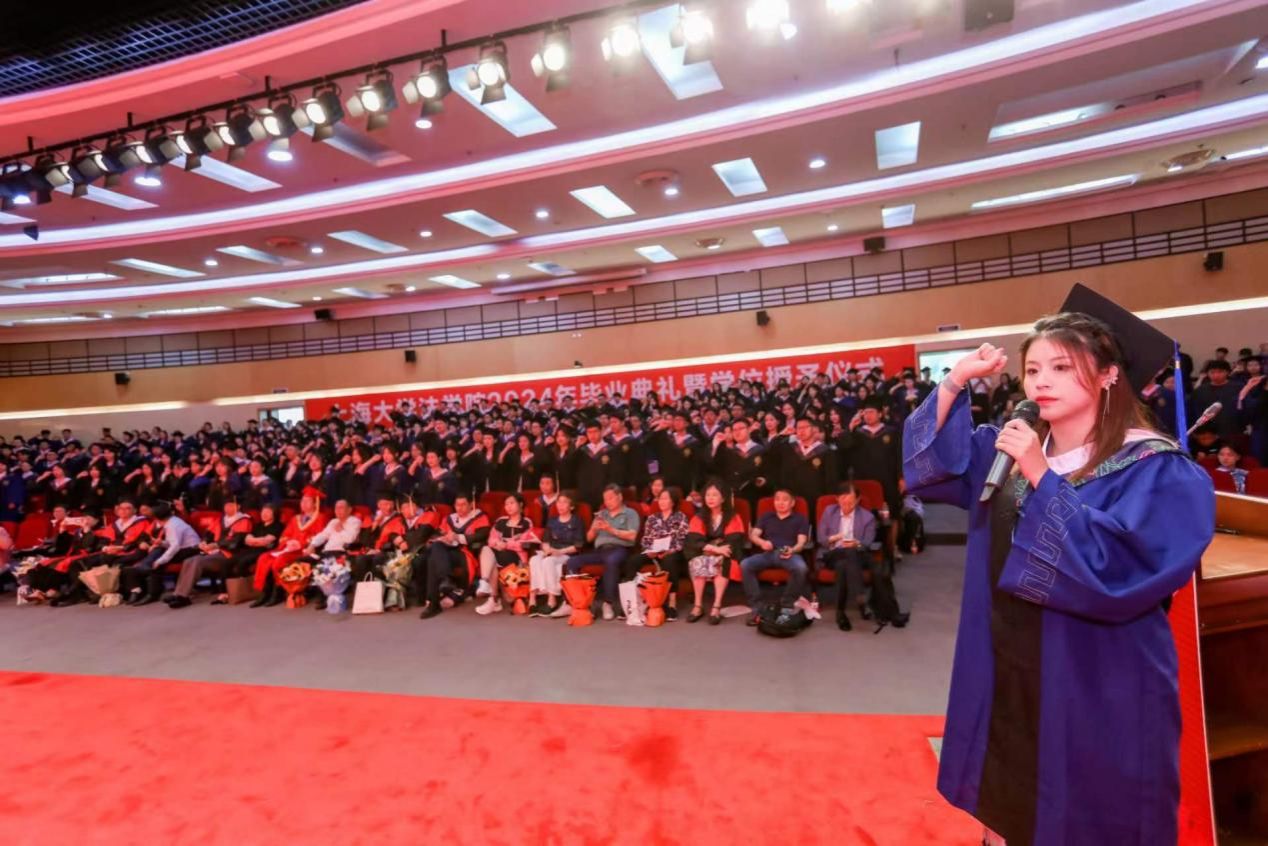 6月19日上午,上海大学法学院2024年毕业典礼暨学位授予仪式在上海大学图书馆报告厅举行。法学院2024届本研毕业生、学生家长和法学院导师代表以及校友400余人共赴毕业之约。