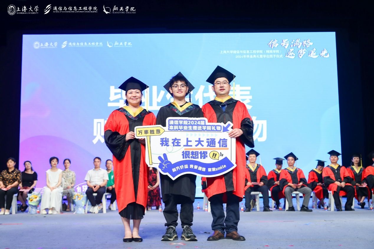 伴随上海大学校歌齐唱声响起,通信学院2024年毕业典礼暨学位授予仪式圆满地画上了句号。在这一刻,所有的祝福与期盼汇聚成河,流向即将启程远航的通信学子们,未来的日子里,通信学院的名字因你们而更加闪耀。祝愿全体通信学院的毕业生们,勇敢地跨越山川湖海,前路星光璀璨、坦荡无垠!(撰稿:刘禹含、杨丽琴、吴静)