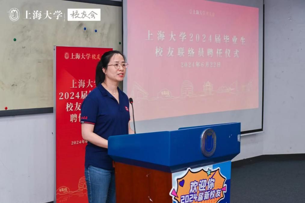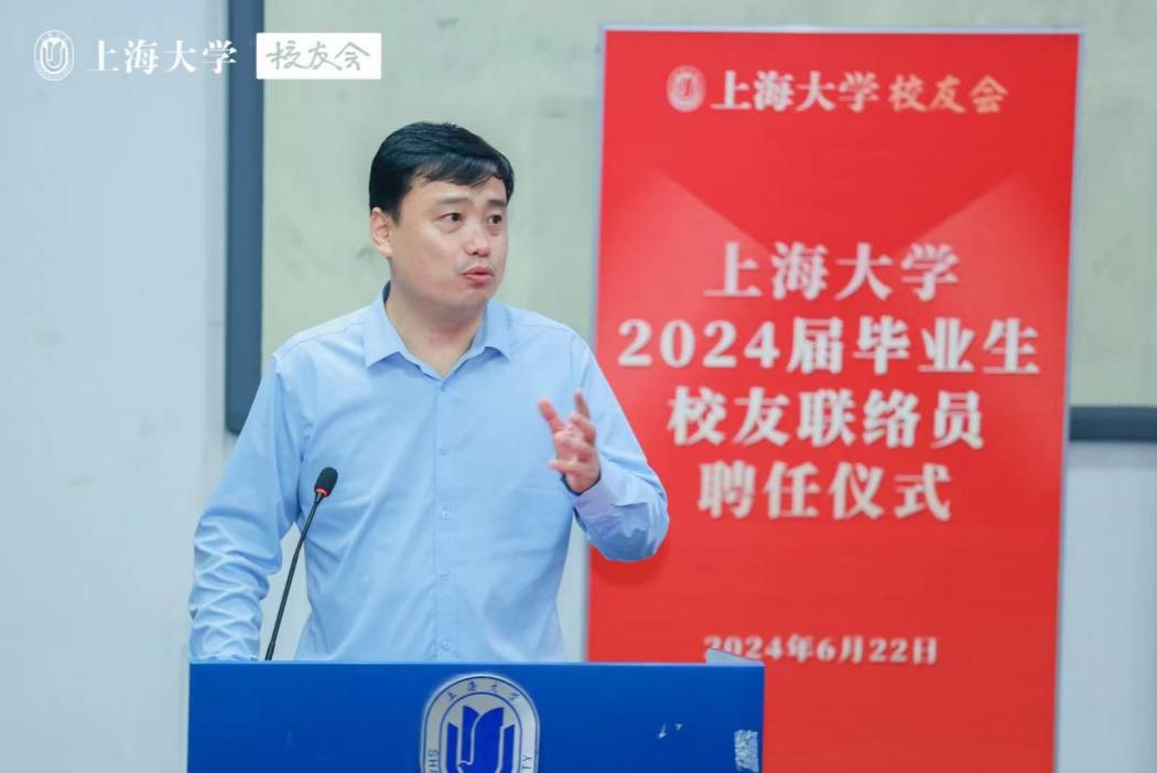 随后,校友会办公室校友工作副主管井晓昌宣读《关于聘任上海大学2024届校友联络员的决定》。根据学校、学院推荐、本人同意,决定聘请蔡盛训、司源鹏等393名同学为2024届毕业生校友联络员。
