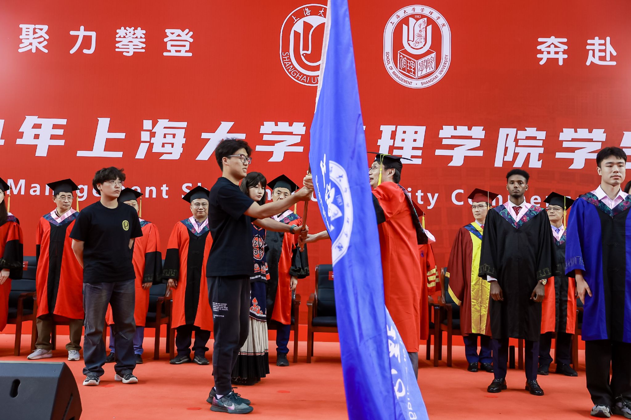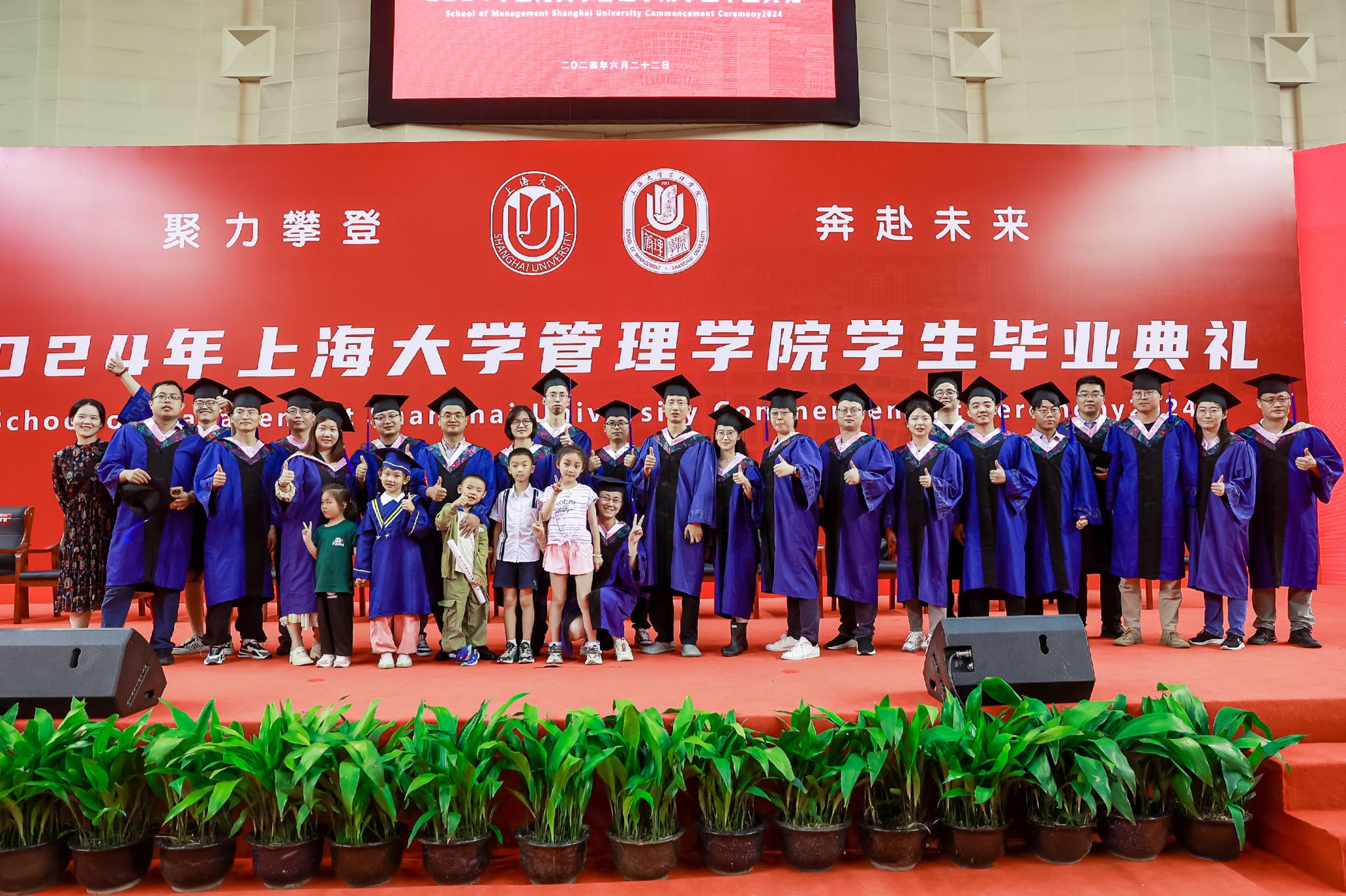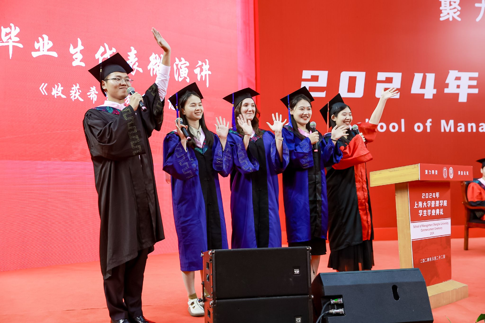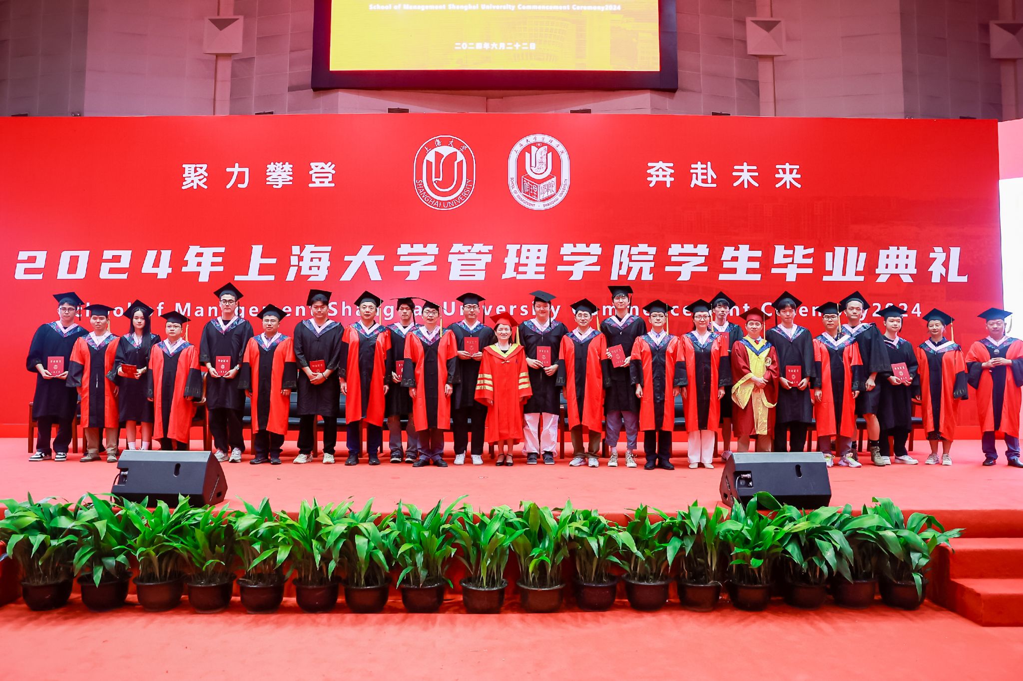 最后,上海大学管理学院2024年毕业典礼暨学位授予仪式在熟悉的《上海大学校歌》激昂旋律中圆满落下帷幕。师生们纷纷在场地内外合影留念,挥手作别,将校园中的温馨与欢乐永远铭记于这一无法忘怀的时刻。
