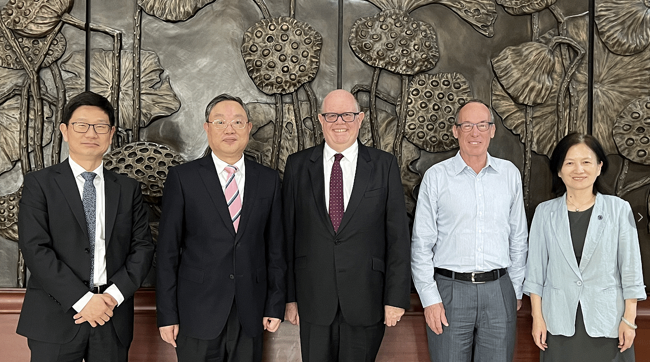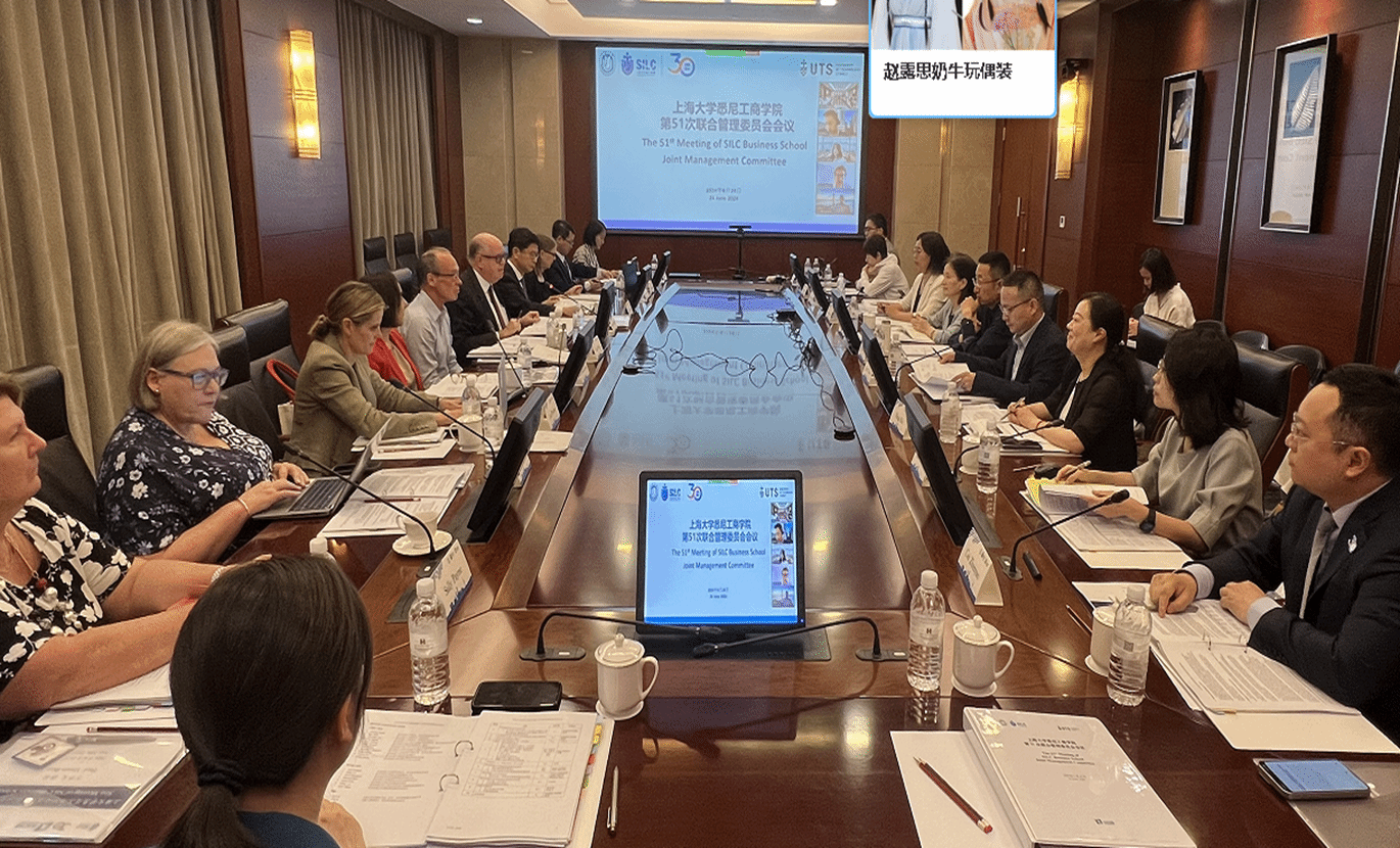 6月24日下午,上海大学悉尼工商学院第51次联合管理委员会会议顺利召开。上海大学党委常委、副校长聂清,上海大学党委常委、总会计师苟燕楠,上海大学教务部常务副部长彭章友,悉尼工商学院党委书记吕康娟、院长卞亦文等出席本次会议。参加会议的悉尼科技大学(UTS)代表有悉尼科技大学校长Andrew Parfitt、副校长(国际事务)Iain Watt、副校长(全球合作伙伴)Leo Mian Liu以及来自UTS各部门和院系的领导。会议开始前,上海大学党委书记成旦红代表上海大学对悉尼科技大学代表团的来访表示热烈欢迎。成旦红书记、聂清副校长与悉尼科技大学校长Andrew Parfitt、副校长(国际事务)Iain Watt、副校长(全球合作伙伴)Leo Mian Liu亲切会谈,就上海大学与悉尼科技大学的战略合作进展进行了沟通交流。