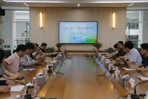 在奉贤中学校长林春辉的带领和陪同下,上海大学一行参观了奉贤中学的科创大楼、湖畔图书馆和美术馆,深入体验了奉贤中学在科技创新教育和艺术人文教育方面做出的创设。随后,双方在会议室开展工作交流会。