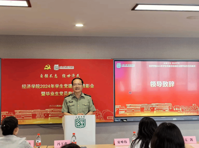 6月28日下午,经济学院2024年学生党建总结表彰会暨毕业生党员教育在东区一号楼580会议室举行。中国工商银行上海市分行营业部纪委书记、党委委员孙俊杰,中国工商银行上海市分行营业部纪委办公室主任姚夕莹,中国工商银行上海市分行营业部纪委办公室专职纪检干部胡文,上海大学经济学院党委副书记、副院长冯玉鑫,上海大学经济学院研究生党建中心主任夏唯伟,上海大学经济学院本科生第一党支部书记孙冰、上海大学经济学院本科生第二党支部书记秦丽君、上海大学经济学院研究生辅导员亢凯、张博扬以及经济学院研究生党员代表、本科生党员代表参加会议。