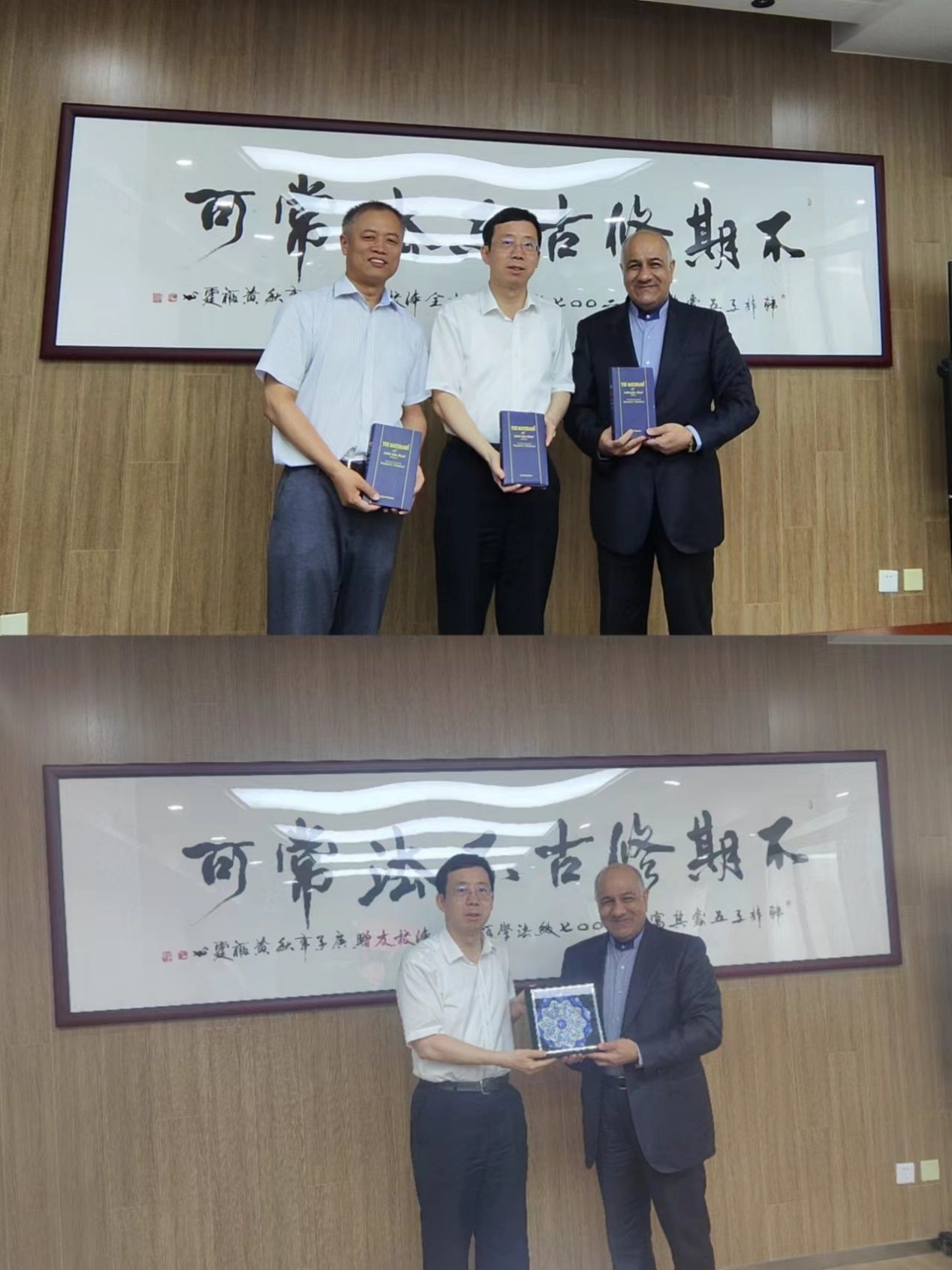 上海大学向伊朗国际关系学院赠送纪念品和百年上大书籍。