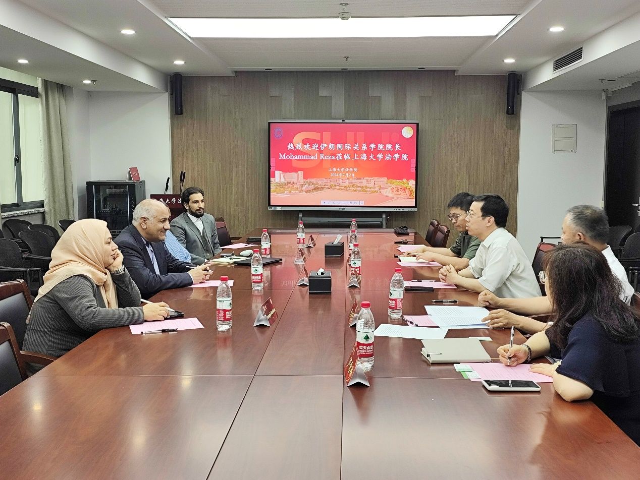 李凤章院长简要介绍了学院办学性质、学生规模、专业设置、人才培养等情况,并就学院的国际化战略做了介绍,上海大学法学院在本科阶段有英美法实验班,在硕士阶段开设资源能源涉外法治人才培养项目,未来希望和伊朗外交部国际关系学院在能源法、文化遗产保护,国际组织等方面开展合作。