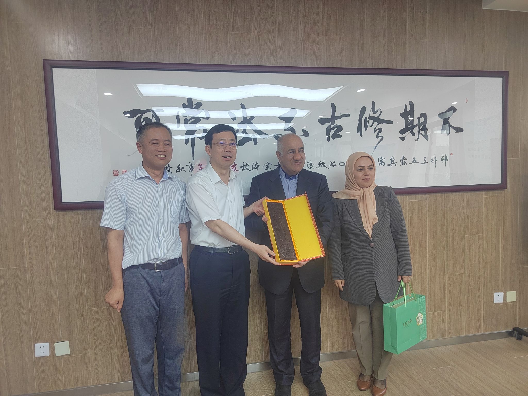 伊朗国际关系学院向上海大学赠送纪念品和书籍。