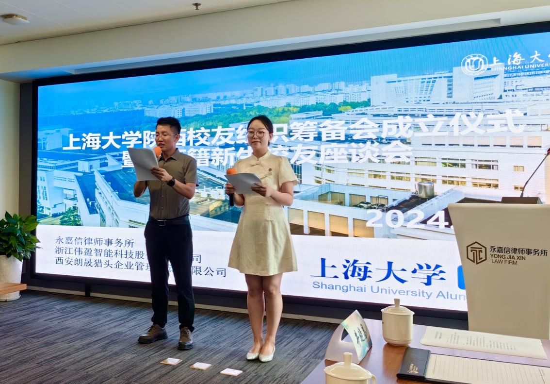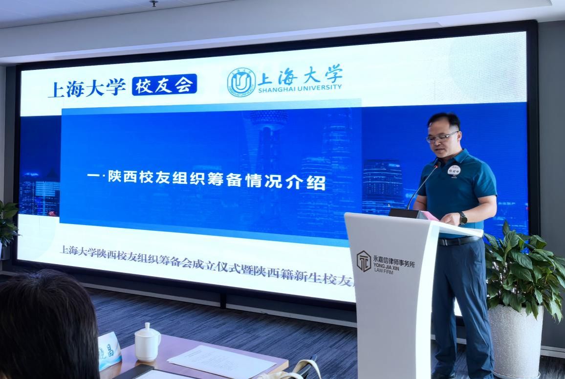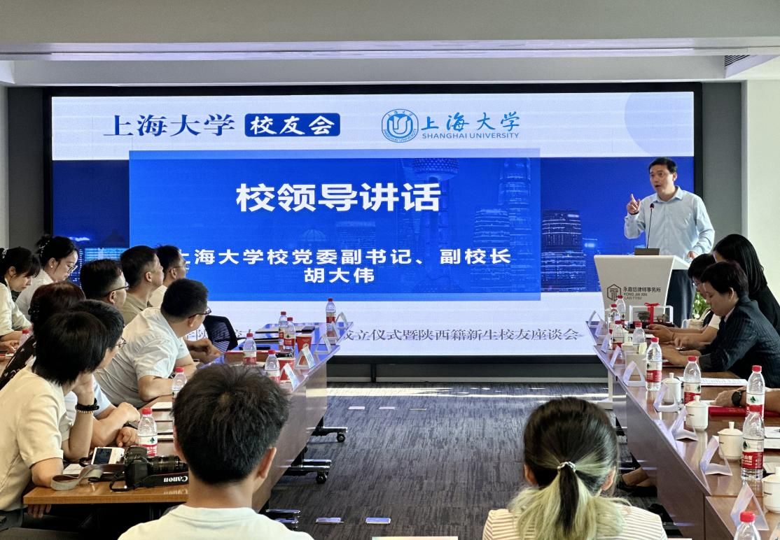 8月18日,上海大学陕西校友组织筹备会成立仪式暨陕西籍新生校友座谈会在西安举行。上海大学党委副书记、副校长胡大伟,教务部副部长、教学质量监控与评估中心主任辛明军,文学院党委书记陆甦颖,党委副书记、院长刘旭光,党委副书记、副院长丁佳蒙,对外联络处副处长、校友会办公室副主任彭明霞,招生就业处主管叶亮,陕西招宣组、外联处相关老师以及在陕西工作、生活的校友代表、2024级陕西籍新生代表及家长出席会议。大会由2015届校友王刚、2021届校友阮家苗主持。