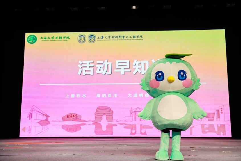 新生大会上,日新书院的吉祥物新新,对大家加入日新书院大家庭表示热烈欢迎。新新邀请了材料学院副院长朱波为新生介绍“安全教育月”的活动、材料学院副院长王武荣为新生介绍“专业启航月”的活动。