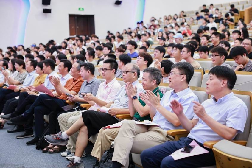 最后,日新书院院长、材料学院党委副书记、执行院长钟云波老师给新生们上院长第一课。钟院长将科学技术与实际应用结合,为大家展示了工科学习的重要性,也希望大家能进一步了解专业、认真学习专业,解决卡脖子难题,落实科技报国。