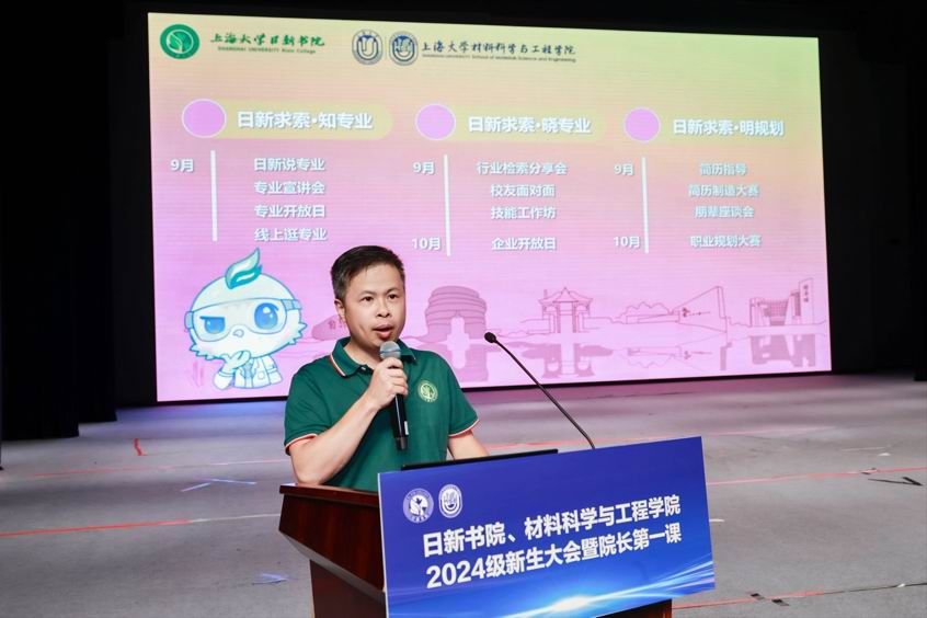 奋楫逐梦新征程,材料启航扬新帆。9月6日下午,上海大学日新书院、材料科学与工程学院2024级新生大会暨院长第一课在伟长楼举行。近千名2024级新生以昂扬的姿态,青春向上的斗志,怀着梦想与希望,翻开了人生崭新的篇章。