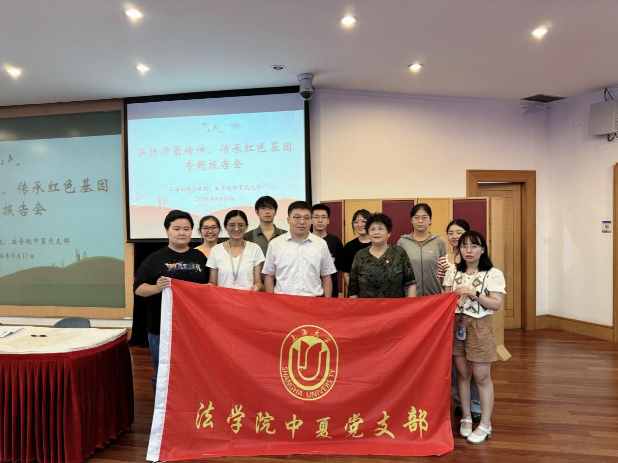 习近平总书记视察山东时指出,要保护和运用好红色资源,大力弘扬沂蒙精神,推动红色基因代代相传。为了积极贯彻落实党中央号召、深入学习和弘扬沂蒙精神,9月11日下午,上海大学法学院、法学院中夏党支部特别邀请沂蒙精神传承促进会会长、全国最美拥军人物、中国好人、山东省劳动模范于爱梅老师带来“弘扬沂蒙精神,传承红色基因”专题报告,临沂市政府办公室四级调研员、机关党委副书记李景昊,来自法学院、材料学院、环化学院、生命学院、上大附小等单位师生近200人参加了报告会。
