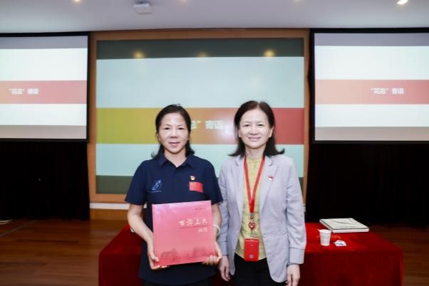 上海大学党委常委、副校长聂清全程参与课程互动。课后,她为张玉花女士送上“红色学府·百年传承”系列丛书《百年上大画传》。