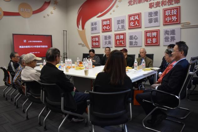 金秋十月,在举国欢庆新中国成立75周年的日子里,在中国传统佳节重阳节到来之际,上海大学新闻传播学院于近日举办离退休教师2024年敬老节座谈会活动,向前辈们表达感恩敬重之情。新闻传播学院党委书记王晴川,新闻传播学院党委副书记、院长严三九,新闻传播学院党委副书记、副院长王智君,以及离退休教师们欢聚一堂,共同参加座谈会。
