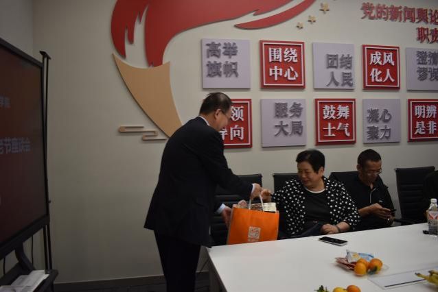 王晴川书记和严三九院长向各位教师前辈赠送礼物,表达学院师生对老前辈们的感恩敬重之情。