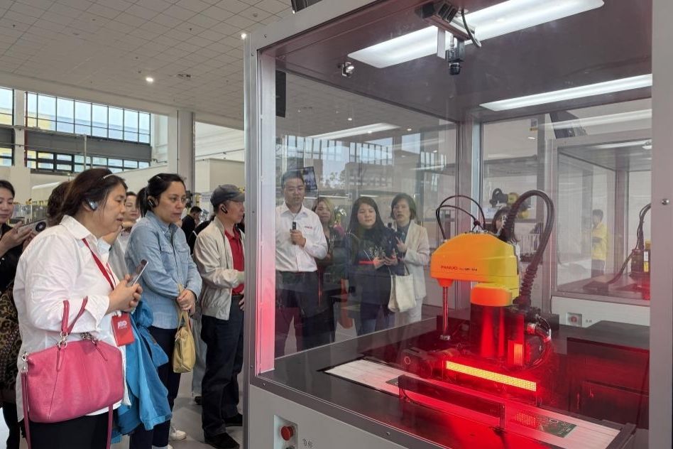 机器人作为新质生产力的典型代表,是传统产业转型升级的强大支撑和动力。上午,在继续教育学院校友、上海发那科机器人有限公司工程机械销售部吴正勇部长的引荐下,学工队伍集体前往上海发那科智能工厂(三期)进行参观。发那科机器人是全球领先的工业机器人制造企业之一,其产品和解决方案广泛应用于汽车、电子、重工等多个行业,和ABB、库卡、安川并列为全球“工业机器人四大家族”。学工队伍集体观摩了机器人整车制造、激光、汽车电子、智慧物流等行业的应用场景,直观体验了发那科全流程智能制造解决方案,全方位感受了智造魅力。