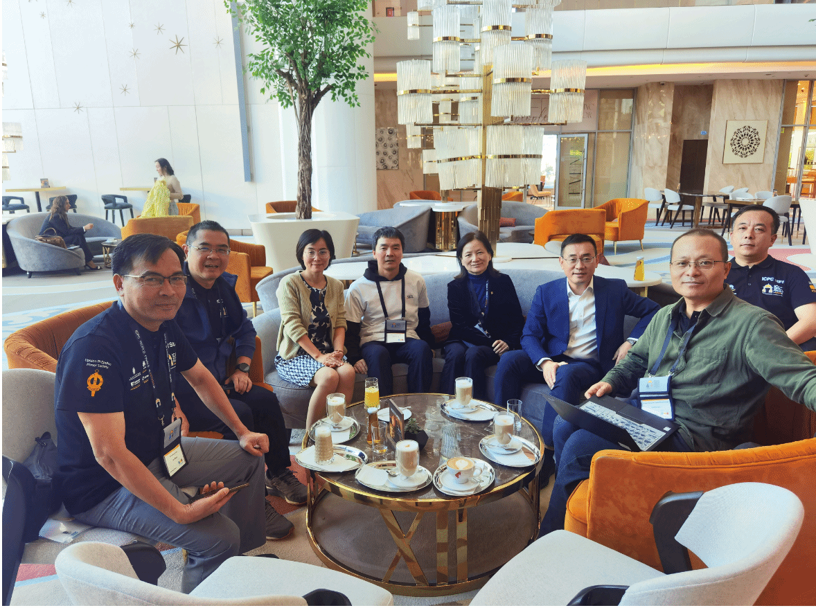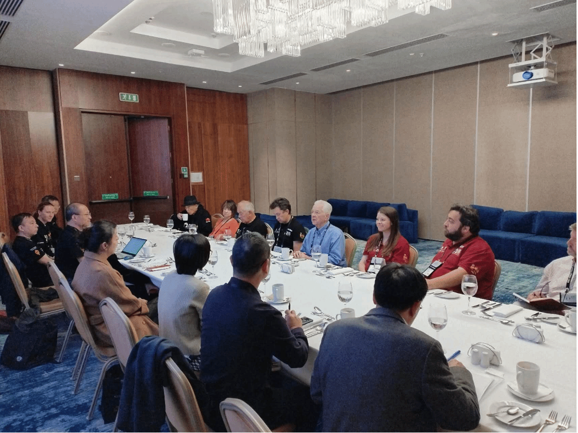 比赛期间,代表团与ICPC(基金会)总部和ICPC北京总部代表进行了会谈。代表团向ICPC总部成员全面介绍了上海大学的历史、现状和未来规划,陈述了上海大学承办2026总决赛(纪念ICPC引入中国内地30周年)的优势和各项准备工作,得到ICPC总部成员的高度认可,双方商定对具体细节做进一步沟通和磋商。ICPC基金会主席Bill Poucher,发展总监Veronika Soboleva,全球区域竞赛总监Roy Andersson,裁判委员会主任Jo Perry等参加会议。
