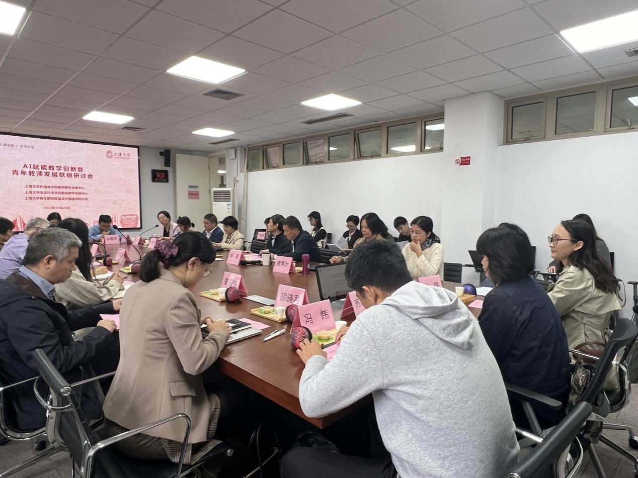为共同探讨人工智能技术如何助力教学创新,促进青年教师的专业成长,10月25日下午,外国语学院在宝山校区C506成功举办“AI赋能教学创新”暨青年教师发展联组研讨会。本次活动得到了上海大学教师教学发展中心的悉心指导,由外国语学院教师教学发展中心主办,并得到了外国语学院青年教师联谊会和生命科学学院教师教学发展中心的大力协助。