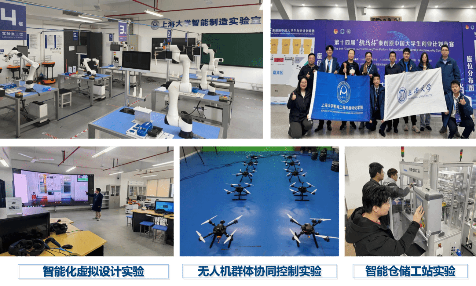 (5)智能制造实验教学中心。中心依托机械工程国家一流学科,对接国家智能制造业支柱产业需求,打造项目搭桥课内外联动、产教互哺校内外联合、师生共融国内外联通的一体化实践环境,致力于培养具有工程实践能力与未来科技赶超能力的新工科专业的卓越工程师。