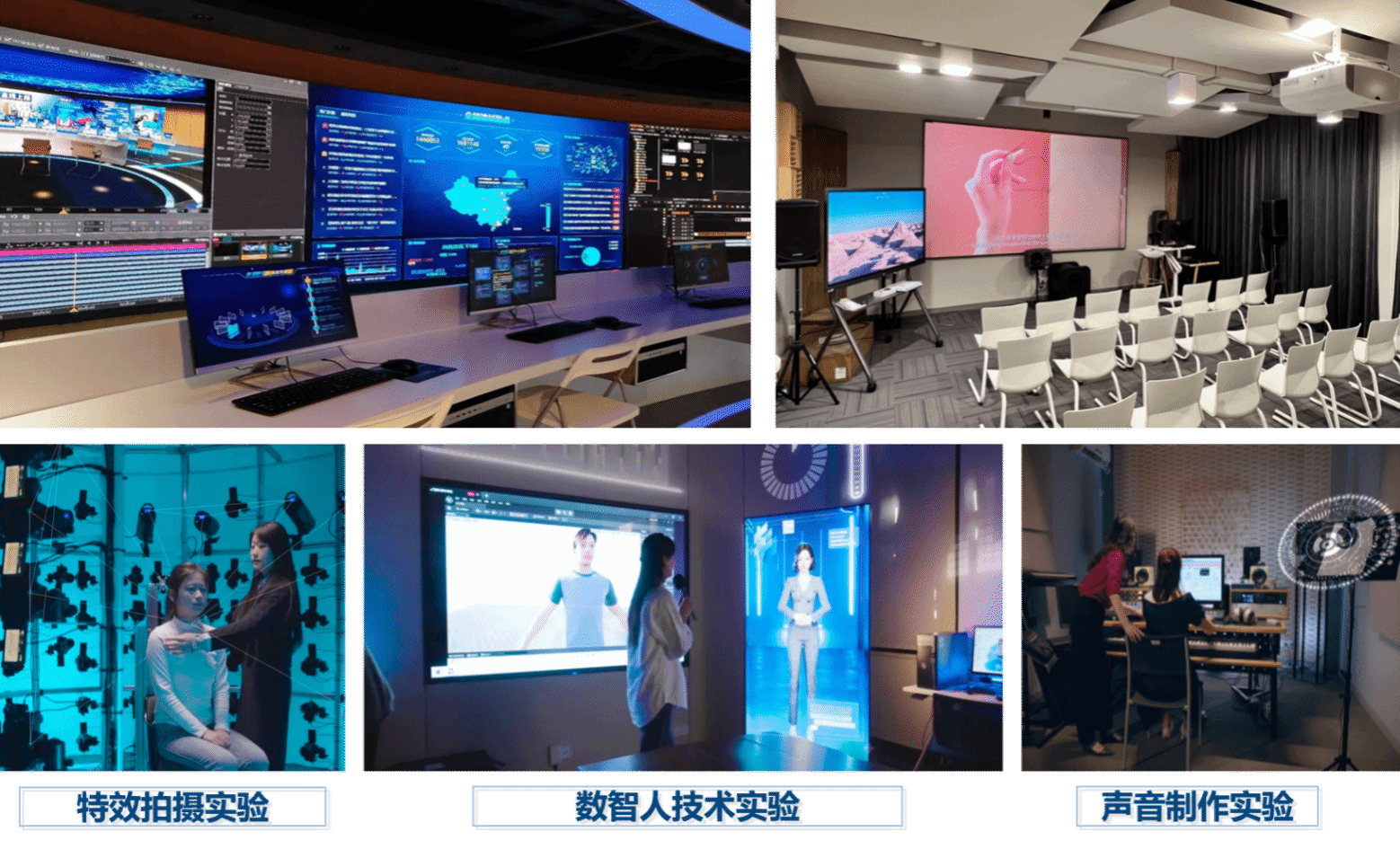 (4)影视传播实验教学中心。中心围绕“艺术技术结合,培养具有人文精神、艺术素养、实务技能的影视传播复合型人才”的人才培养目标,搭建智能影像媒体创新平台、影视特效制作实验教学平台、智能媒体创意制作及融媒生产平台、影视技术及创作实验教学平台,探索多层次全方位地开展实验实践教学。