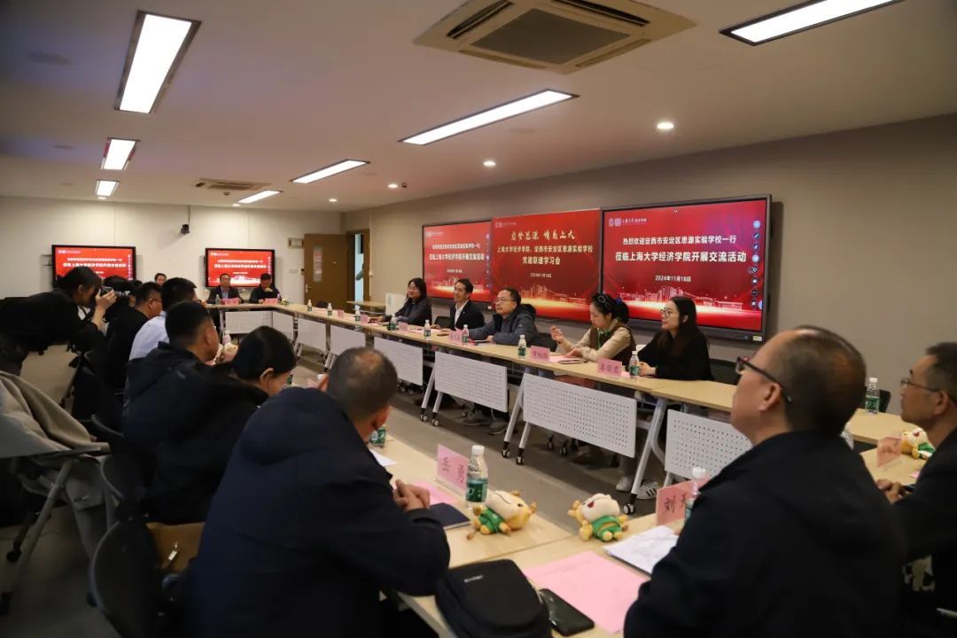 2024年11月18日,上海大学经济学院、定西市安定区思源实验学校在上海大学宝山校区东区经管楼 580 会议室举行党建联建学习会。上海大学经济学院党委书记尹应凯,党委副书记、常务副院长殷凤,党委副书记、副院长冯玉鑫,挂职副院长谭静,团委书记黄婉璐,本科生辅导员秦丽君;定西市安定区思源实验学校党总支书记刘彩霞,共青团定西市安定区委员会副书记董辉,定西市安定区教育局干部李文娟与定西市安定区思源实验学校17位教师出席会议。会议由上海大学第12批研究生支教团甘肃分团团长、经济学院2020级本科毕业生程元辉主持。