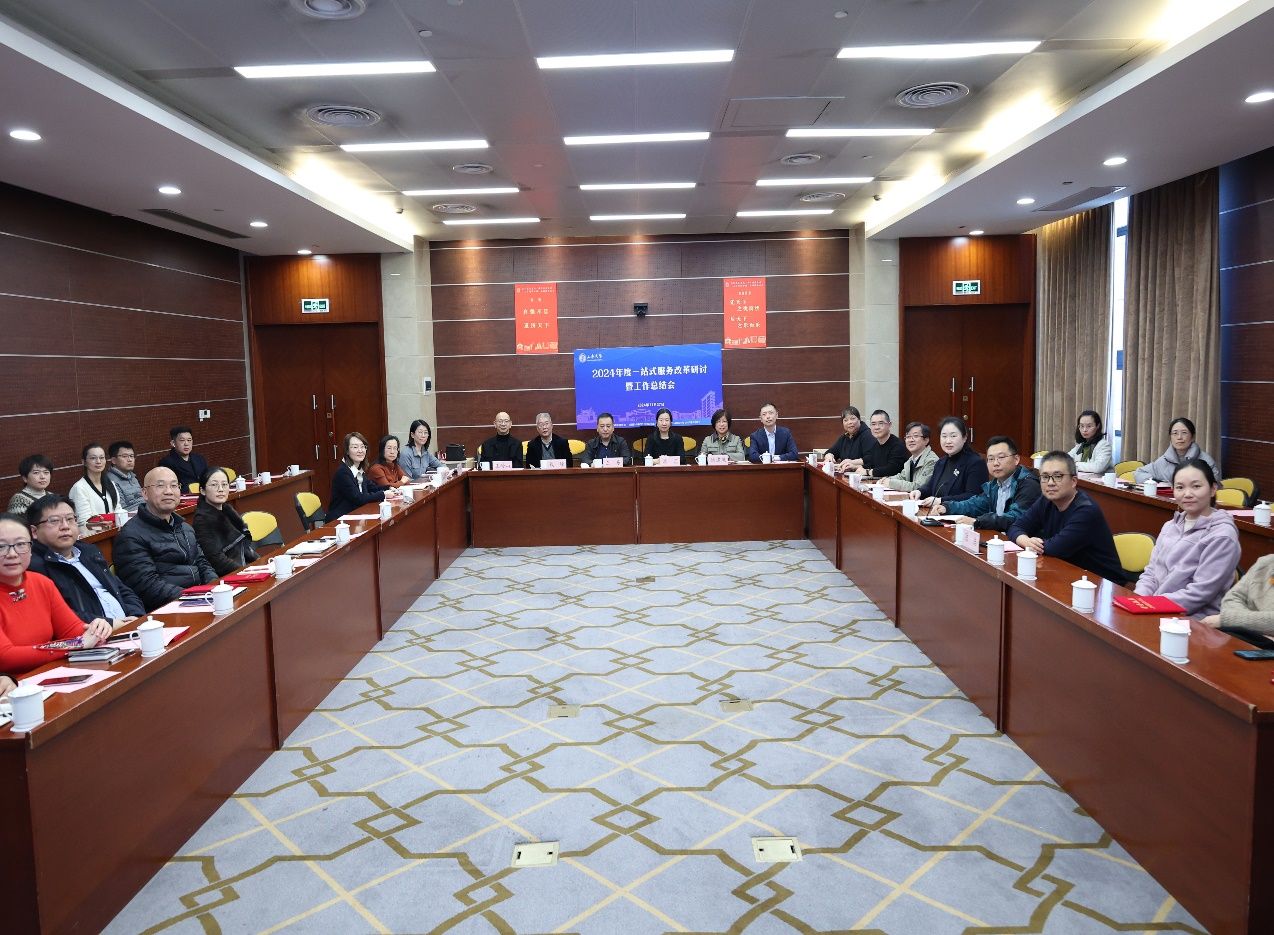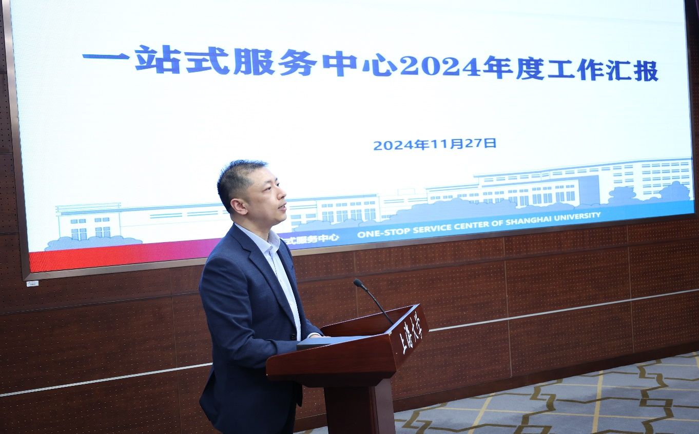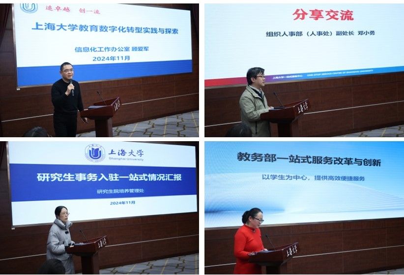 11月27日上午,上海大学2024年度一站式服务改革研讨暨工作总结会在宝山校区成功举办。校党委常委、组织人事部常务副部长、组织处处长、党校常务副校长沈艺,上海市大数据中心应用开发部部长王东,宝山区人才服务中心主任钱建凤,校机关党委书记钱峰,党政办公室副主任、重大项目推进办公室主任王岭山,财务处副处长朱振英,招生就业处副处长贺利,信息化工作办公室副主任顾爱军,组织人事部(人事处)副处长邓小勇,卓越工程师学院副院长毛建华,国际部(国际合作处)副处长来慧洁,本科生书院管理中心(“一站式”学生社区中心)副主任高恺华、一站式服务中心主任高峰以及入驻部门工作人员和师生代表参加会议。