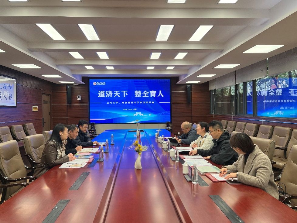 27日,招宣组前往成都石室中学交流。石室中学千年文化、底蕴深厚,今年4月正式挂牌“上海大学优质生源基地”。招宣组一行参观了气势宏伟的校园,深入了解石室中学传承创新的教育理念。石室中学党委书记田间、校长毛道生、北湖校区课程教学中心主任陈树彬、副主任汪绍鑫等领导参与座谈交流。