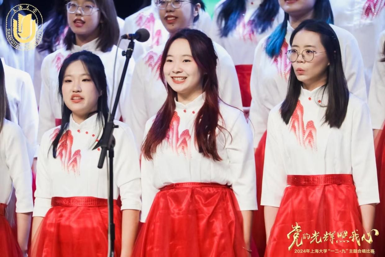 “党的光辉照我心”——2024年上海大学“一二·九”主题合唱比赛于12月8日晚在上海大学伟长楼举行。本次合唱比赛共有29支参演队伍、1500余名师生登台表演,共同奏响新时代爱国强音。由法学院60名师生组成的“无法不爱”合唱团队,以一首《我的祖国》唱响伟长楼,生动展现了中华儿女的爱国热情与民族自豪。
