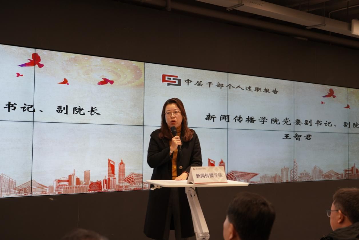 新闻传播学院党委书记王晴川、党委副书记兼院长严三九、党委副书记兼副院长王智君、副院长赵为学、副院长牛盼强和副院长周宇豪,分别作了2024年度中层干部个人述职。他们围绕2024年度重点工作开展情况、特色亮点工作及创新举措、取得的工作成效等方面,分析工作中存在的问题,总结经验,并提出下一步工作计划。