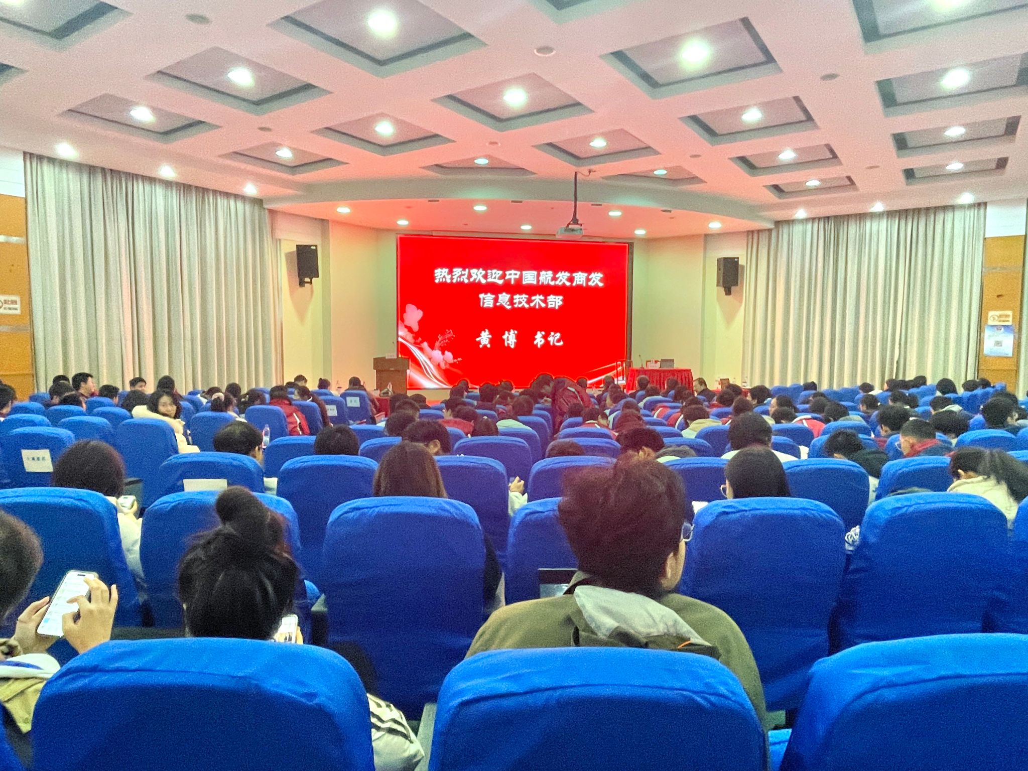 接着,中国航发商发信息技术部黄博书记以《铸心筑梦铸重器》为题,与大家交流了中国航空发动机的发展历史和航空人奉献精神。黄博书记首先从“筑梦篇”开始,以自己的求学之路为大家讲述了自己与航空结缘的经历。接着在“铸造重器”部分,分享了航空发动机发展历程,同时穿插了很多感人至深的故事,让我们更进一步了解“大国工匠”们的“国之重器”研发圆梦之路。随后,黄书记以“知己,知人,知世,知智慧”鼓励在场的所有同学,立定高远志向,持之以恒地努力,为中华民族的伟大复兴贡献自己的力量。