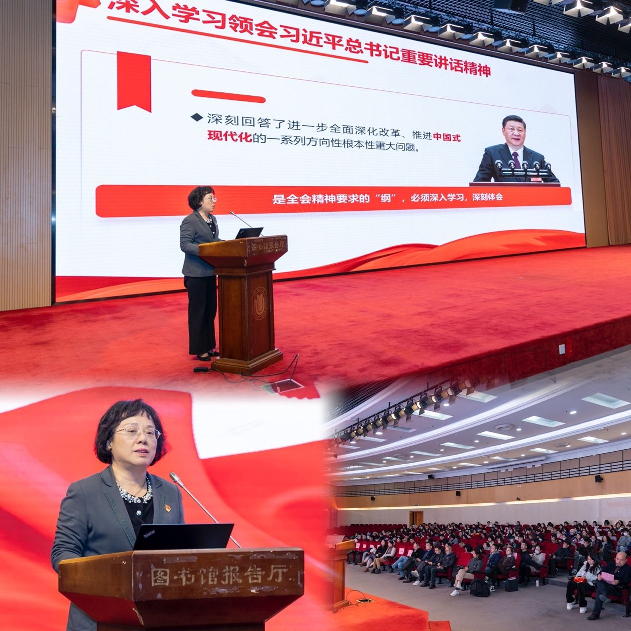 学院党委书记陈静同志主讲党课,带领全体党员深入学习党的二十届三中全会精神。陈书记结合当下时代发展脉络与学院教育工作实际,对全会核心要义进行了深入浅出的剖析,为在场师生明晰了前行方向,奠定了理论基石,让大家深刻领会到新时代新征程中的责任担当与奋斗目标,进一步增强了党员的使命感与政治素养。